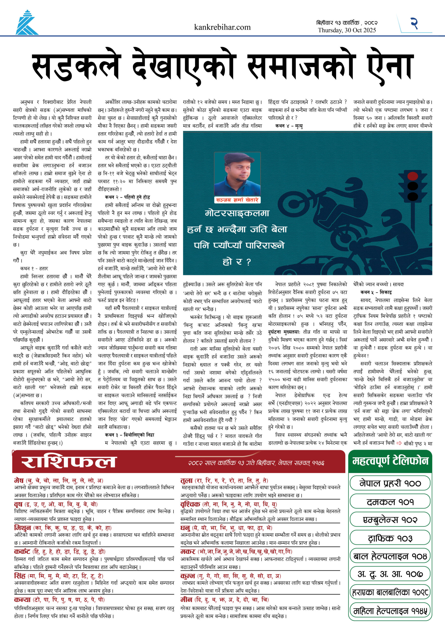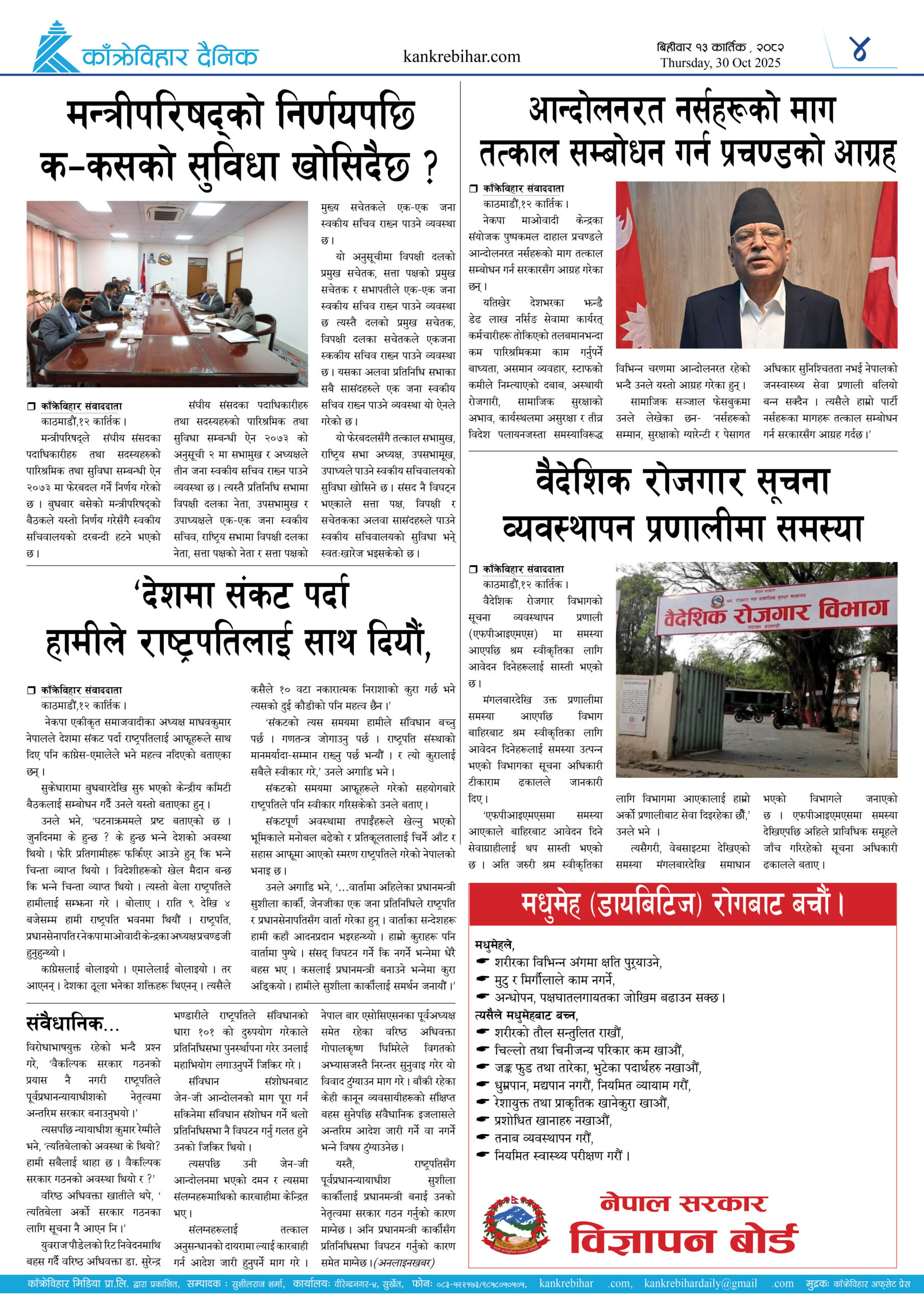 काँक्रेविहार दैनिकः बिहीवार १३ कार्तिक २०८२, 30 Oct 2025