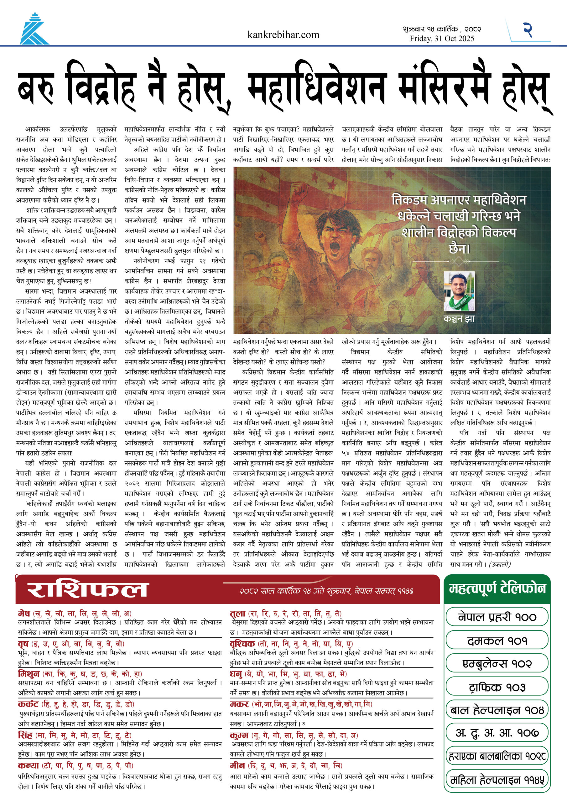 काँक्रेविहार दैनिकःशुक्रवार १४ कार्तिक २०८२, 31 Oct 2025