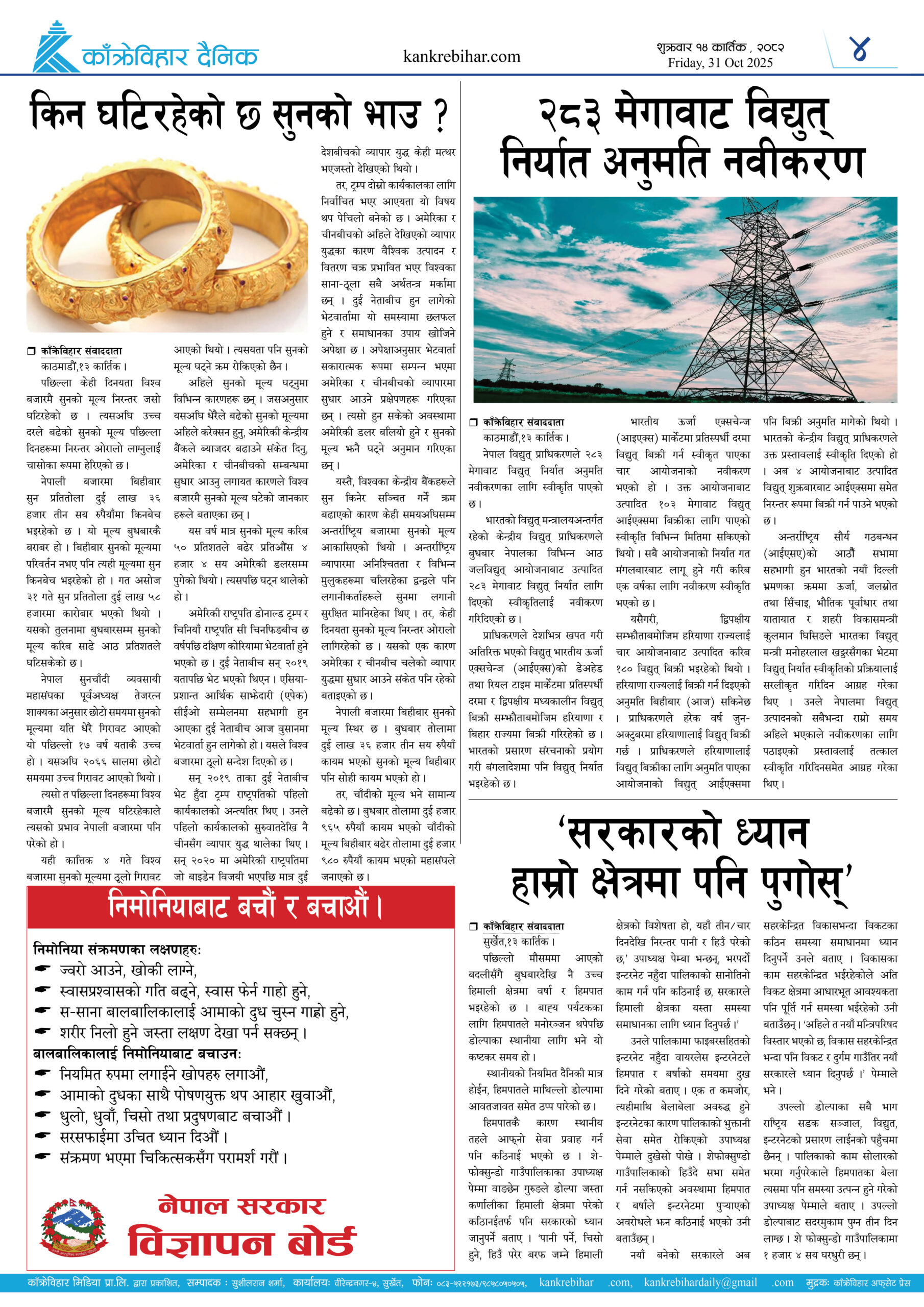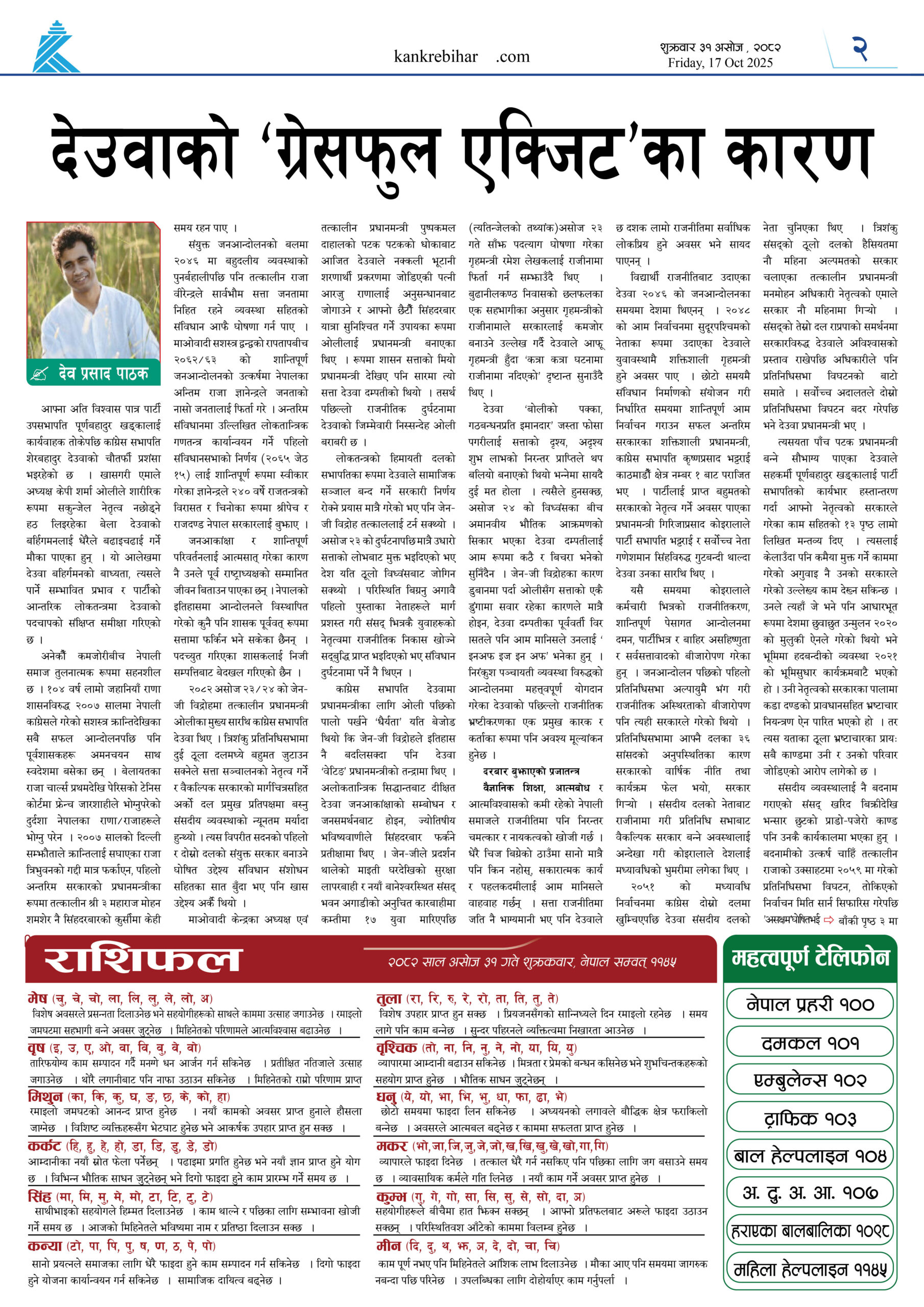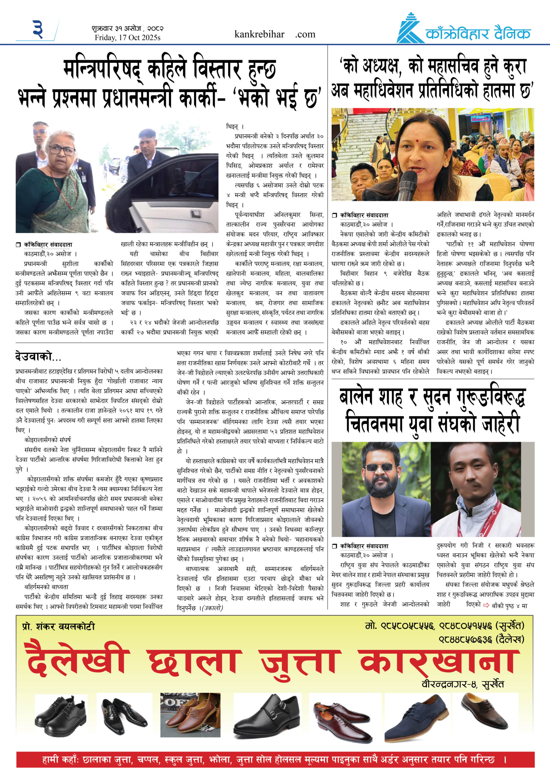 काँक्रेविहार दैनिकः शुक्रवार ३१ असोज २०८२, 17 Oct 2025