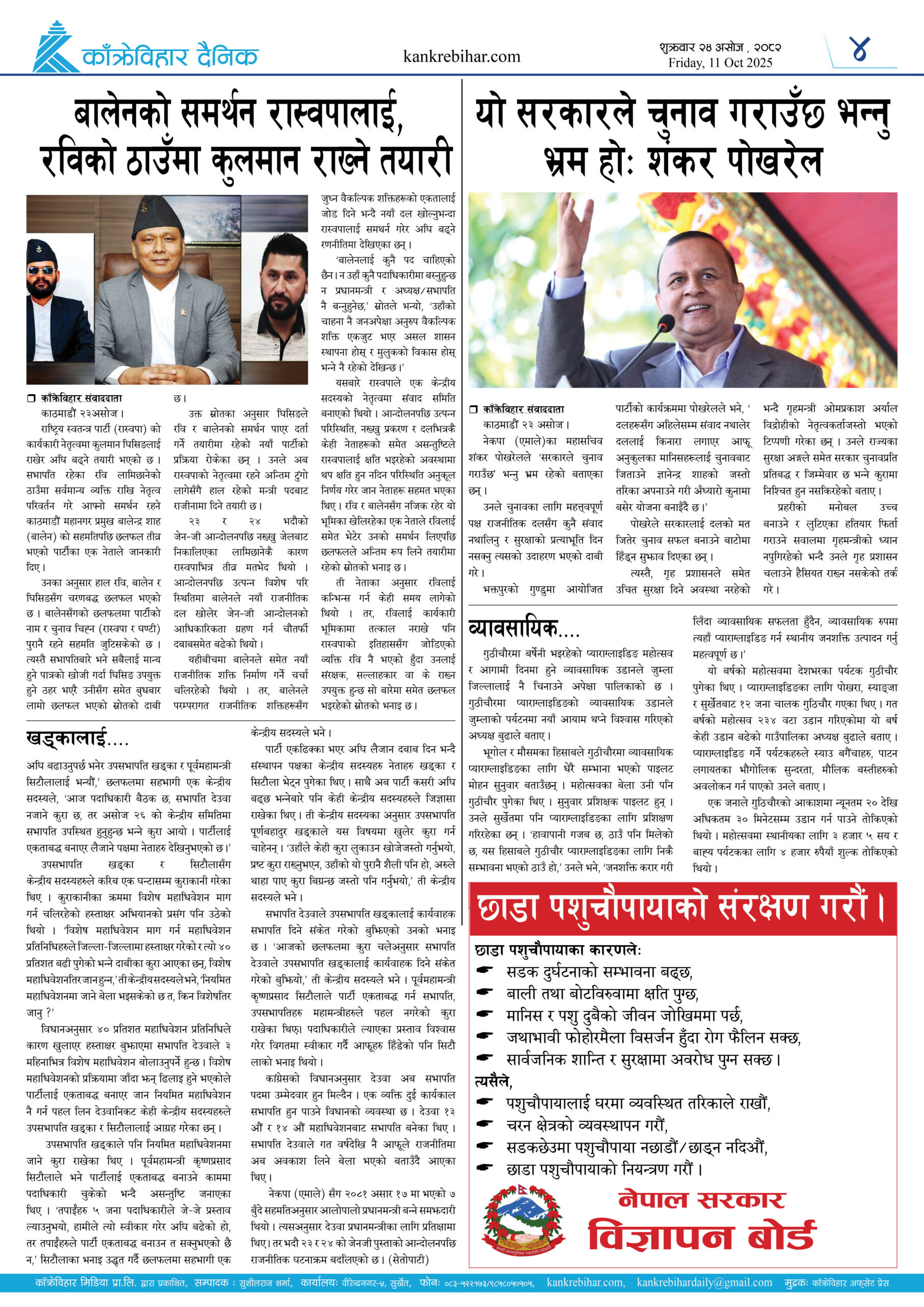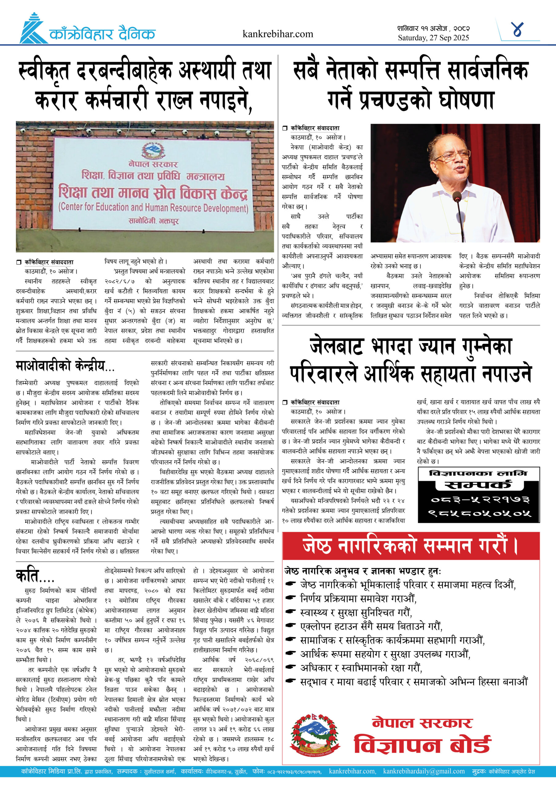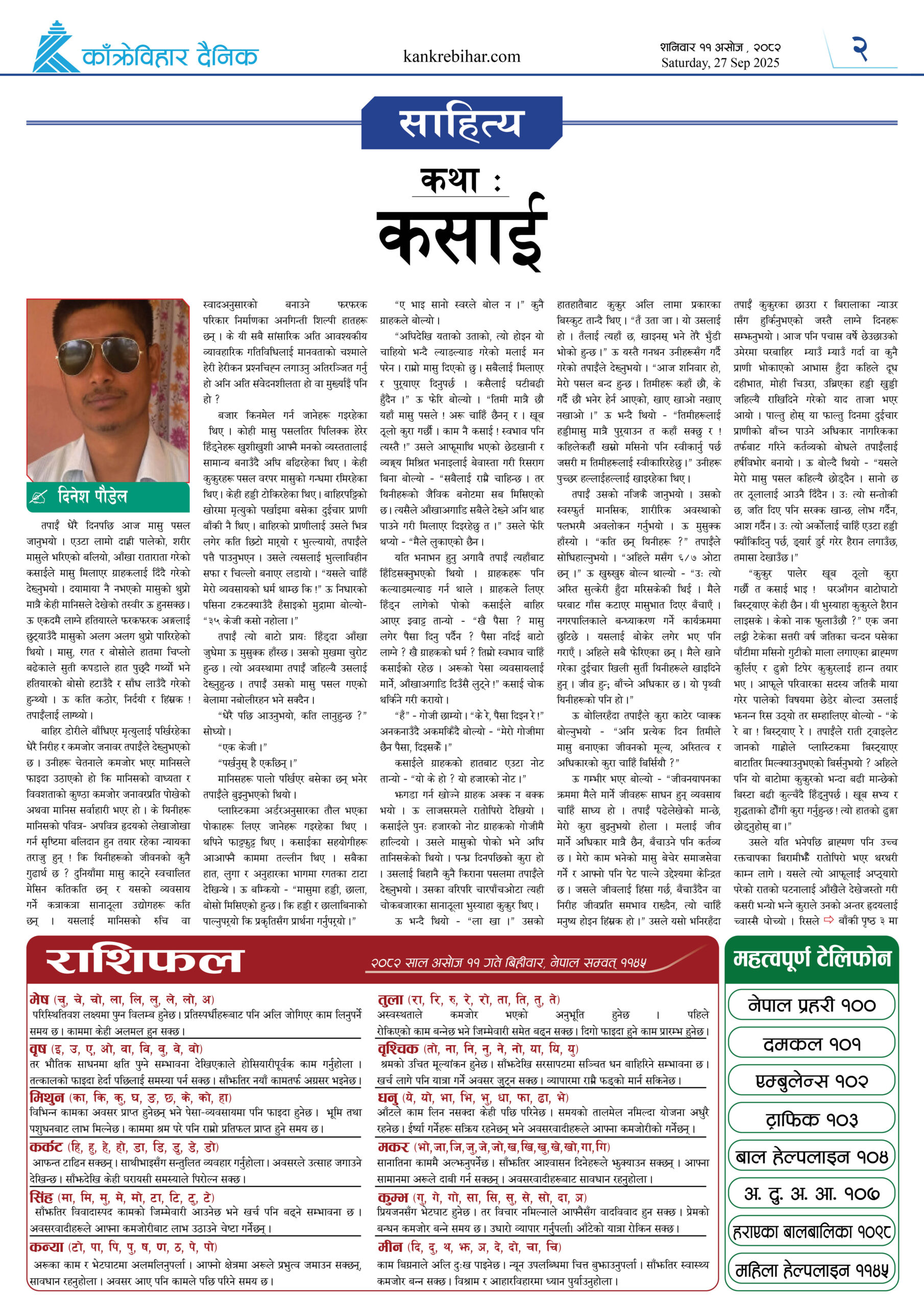 काँक्रेविहार दैनिकः शनिवार ११ असोज २०८२, 27 Sep 2025