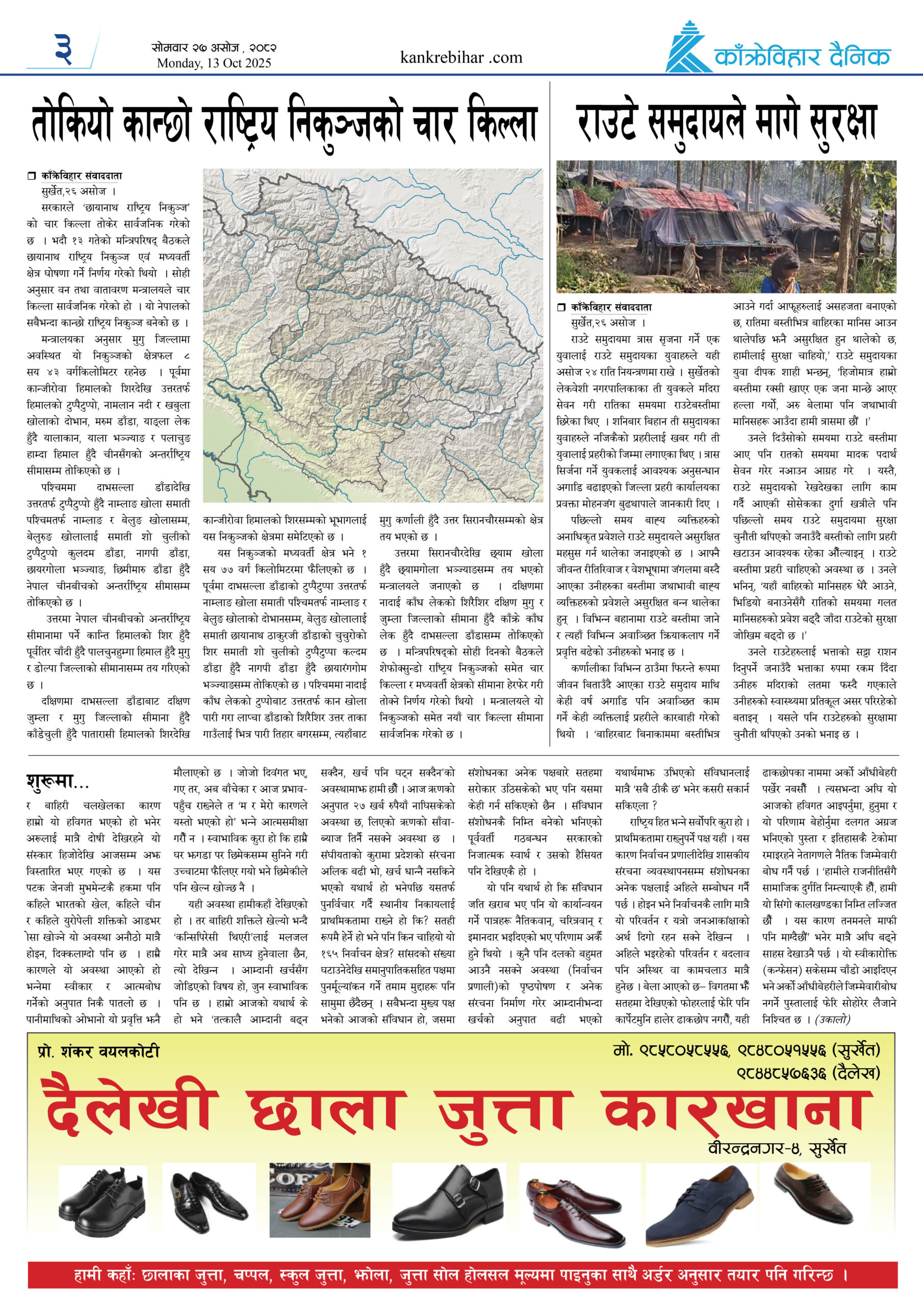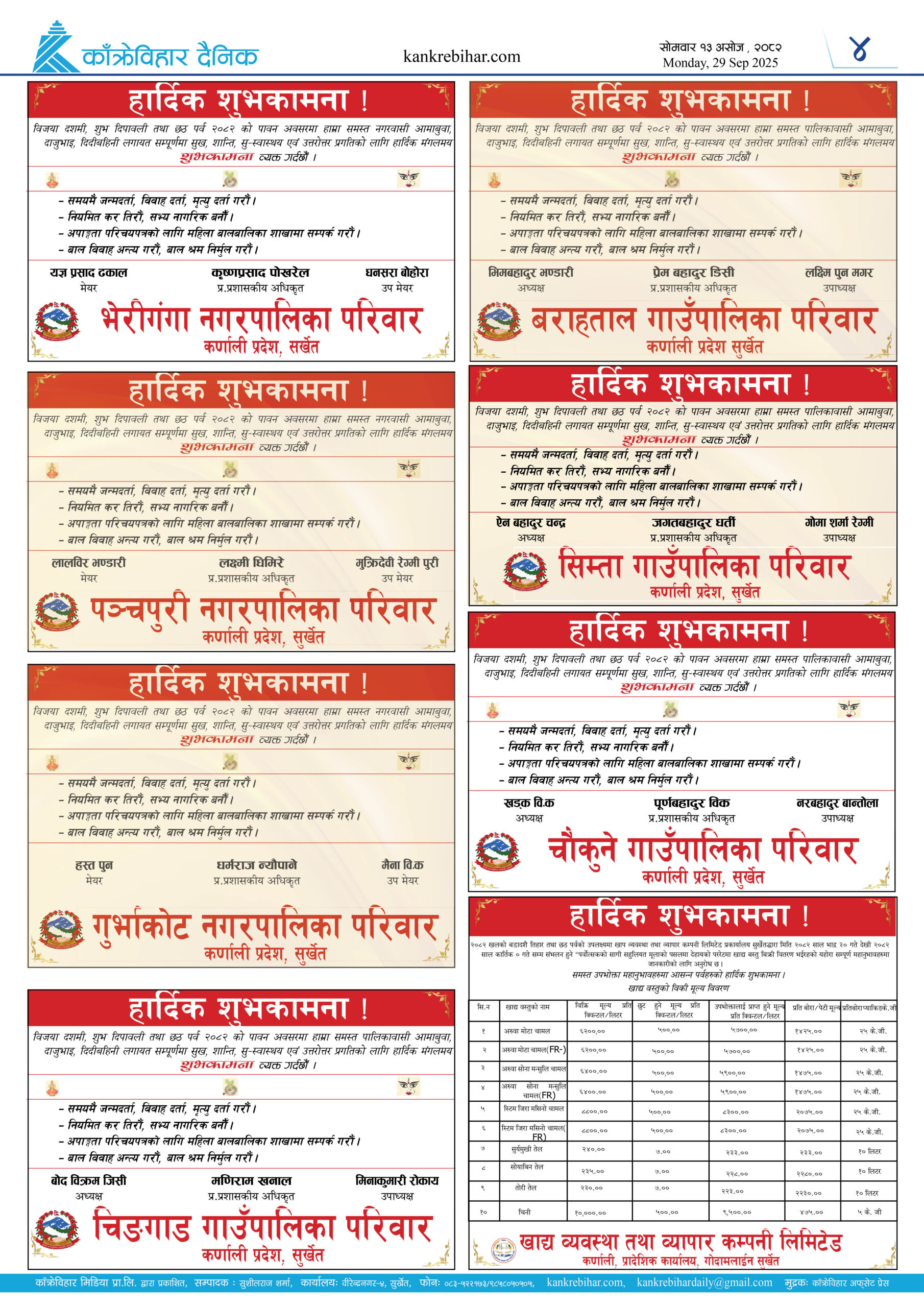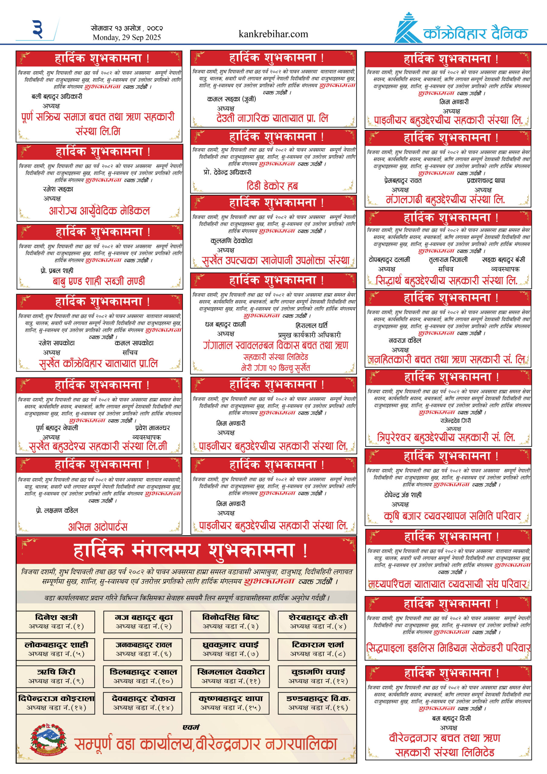 काँक्रेविहार दैनिकः साेमवार १३ असोज २०८२, 29 Sep 2025
