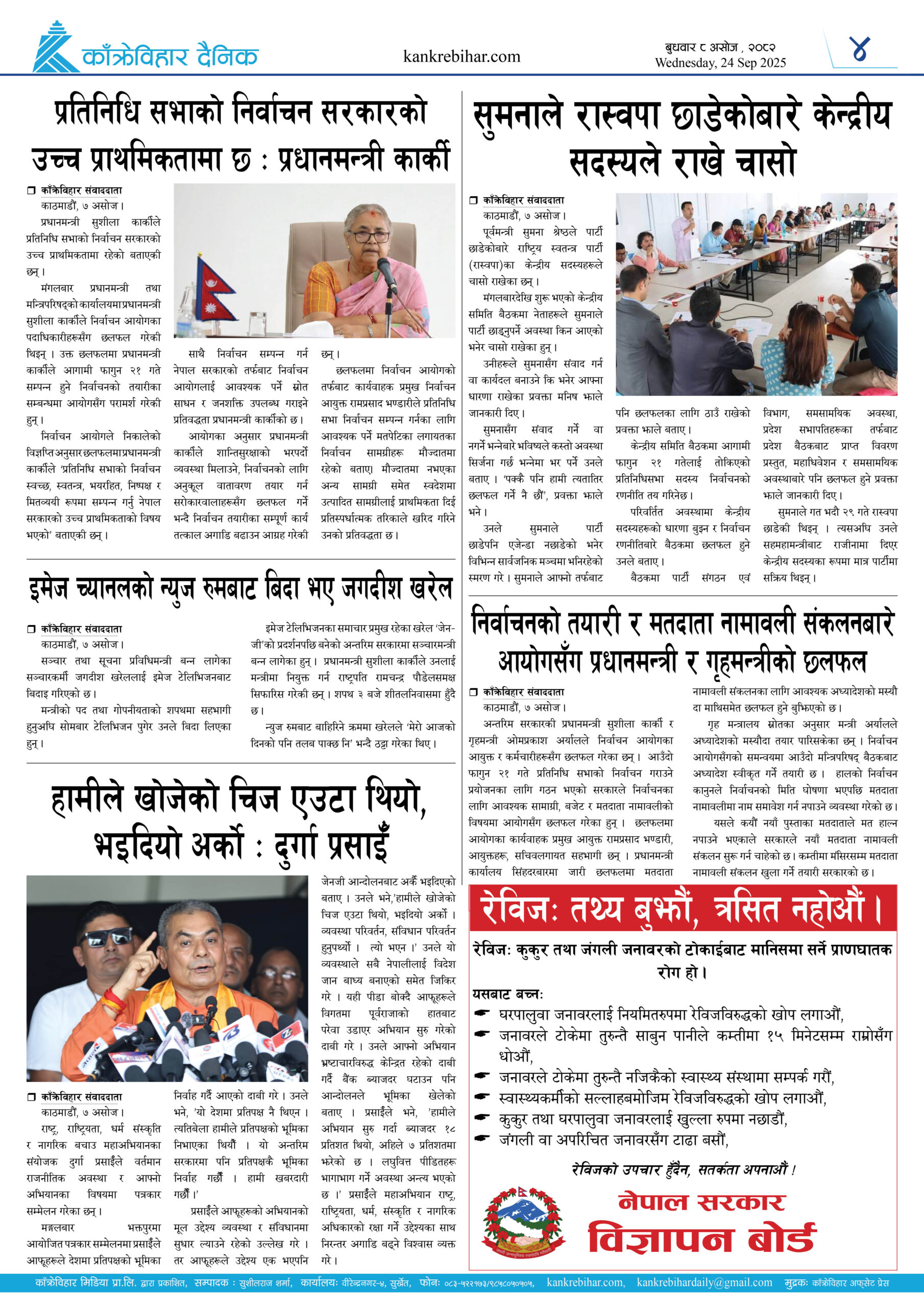 काँक्रेविहार दैनिकः बुधवार ८ असोज २०८२, 24 Sep 2025