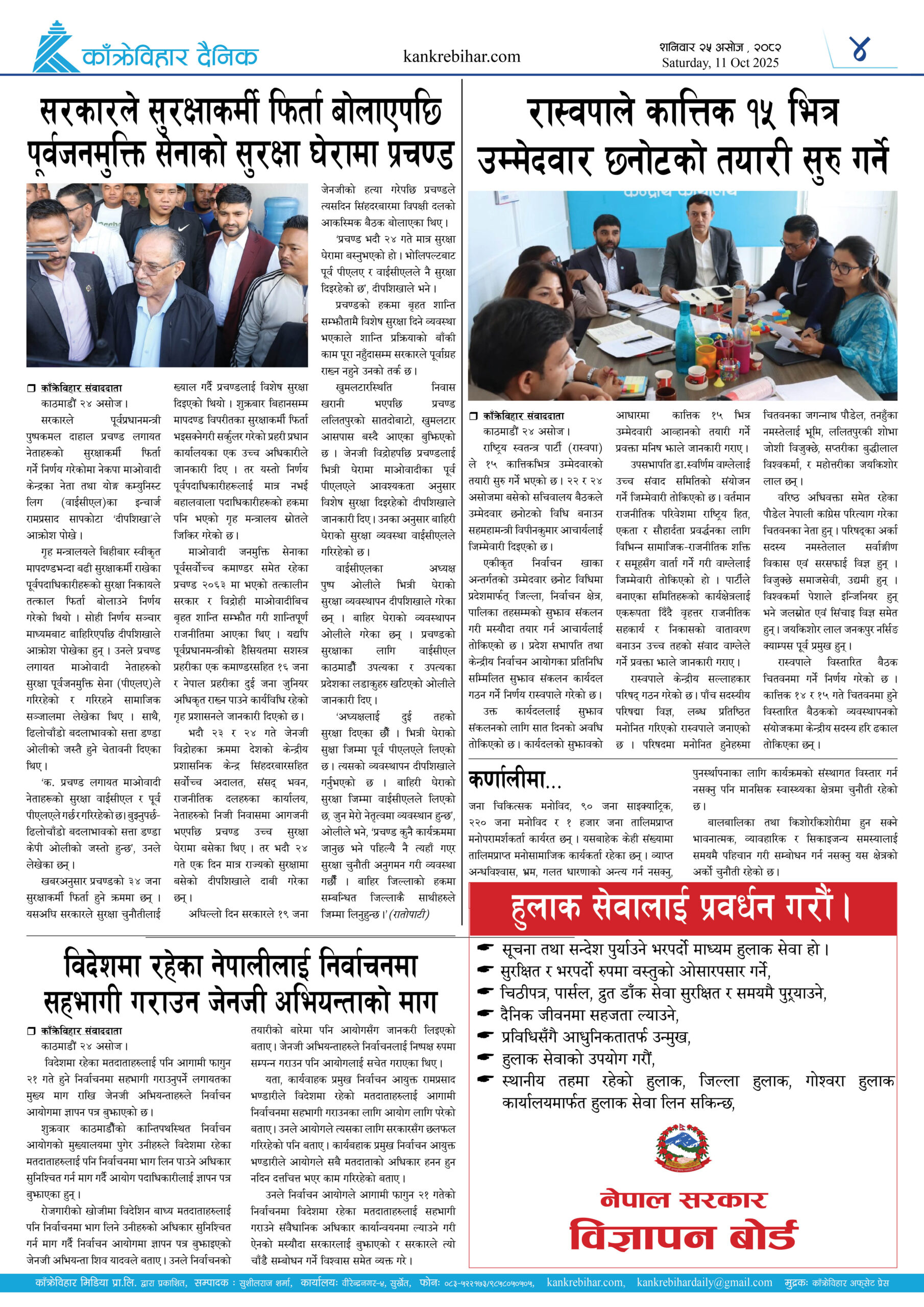 काँक्रेविहार दैनिकः शनिवार २५ असोज २०८२, 11 Oct 2025