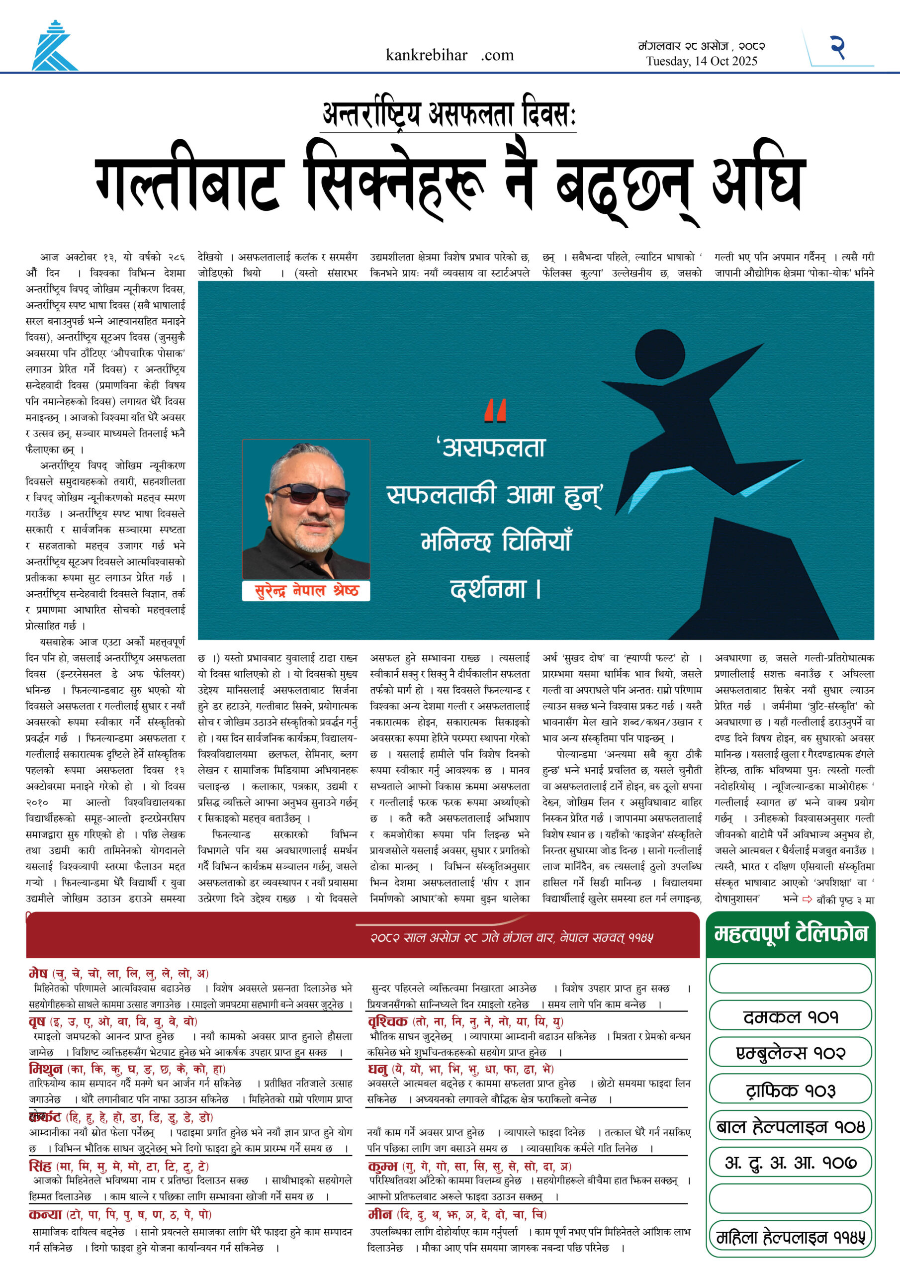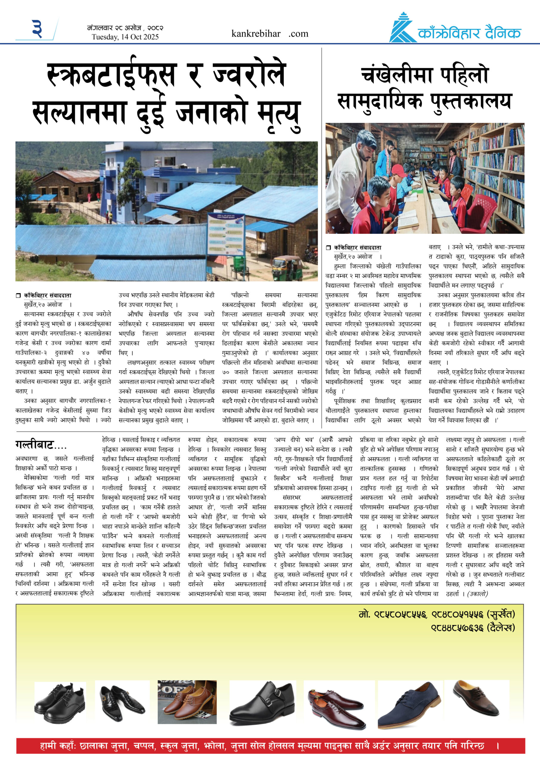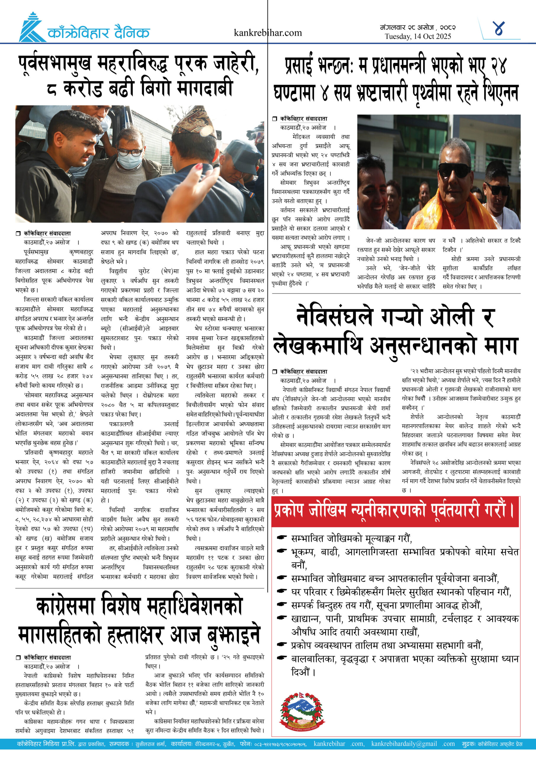 काँक्रेविहार दैनिकः मगलवार २८ असोज २०८२, 14 Oct 2025