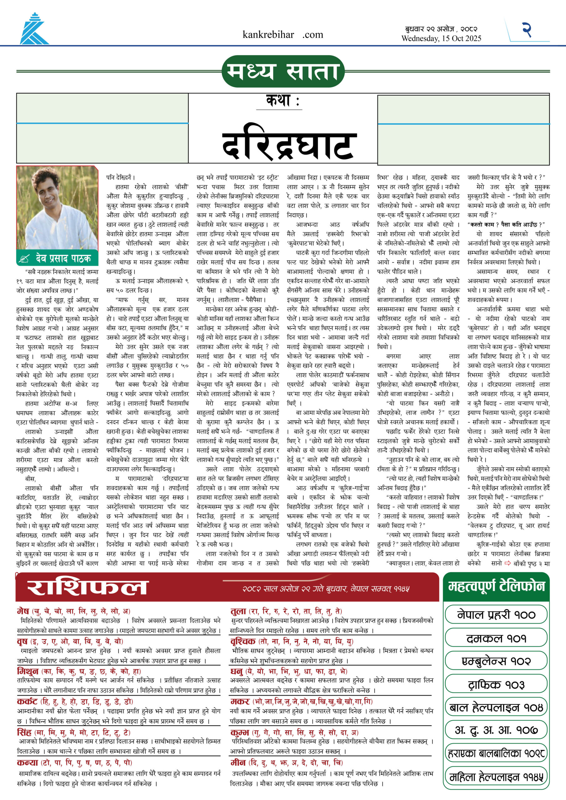 काँक्रेविहार दैनिकः बुधवार २९ असोज २०८२, 15 Oct 2025