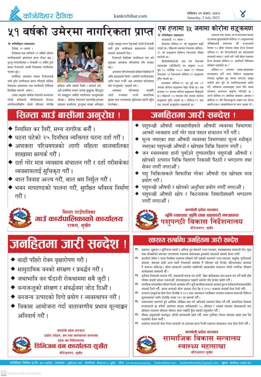 काँक्रेविहार दैनिकः शनिवार २१ असर २०८२, 05 July 2025