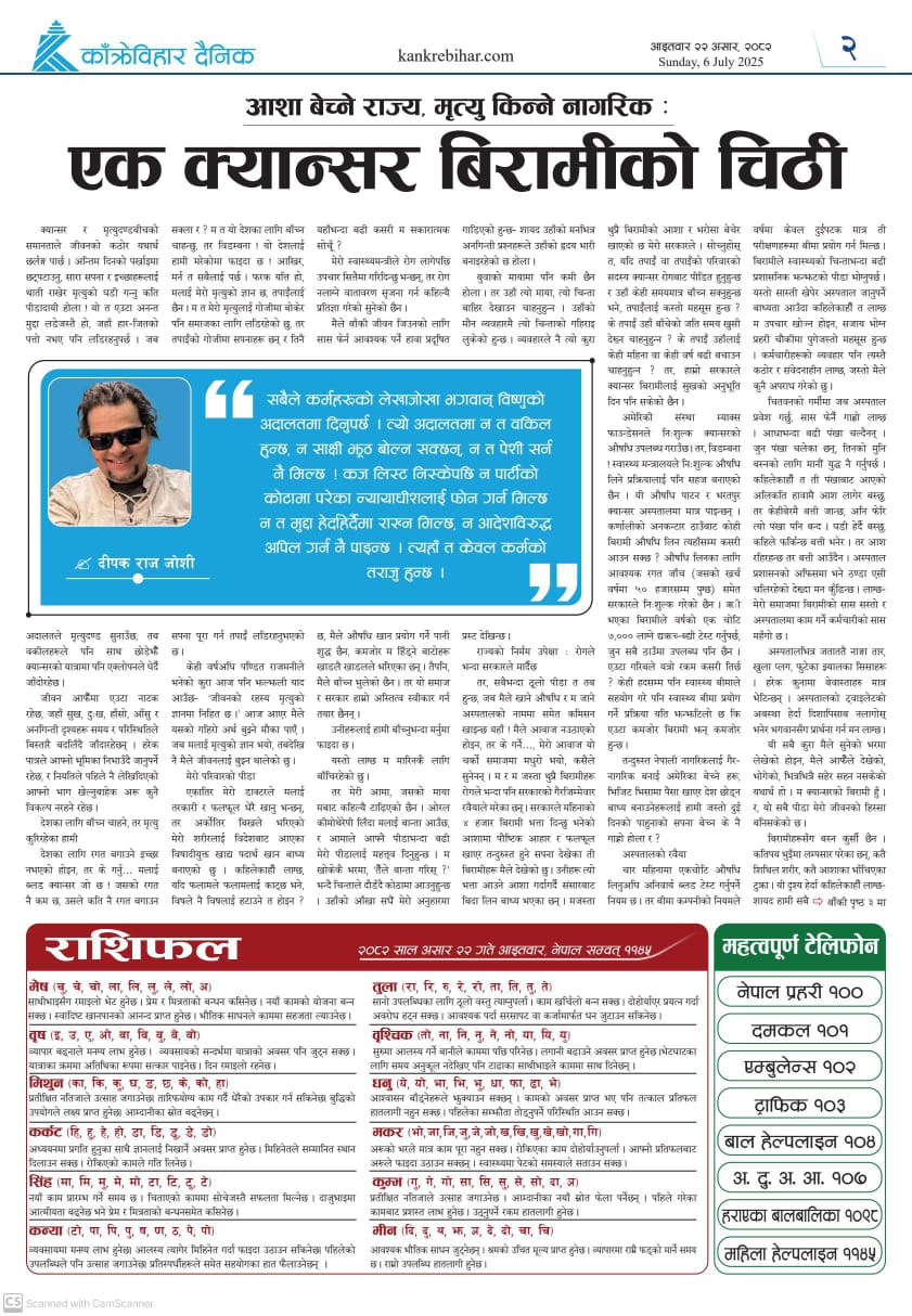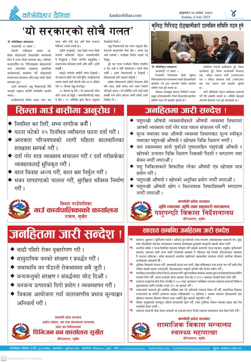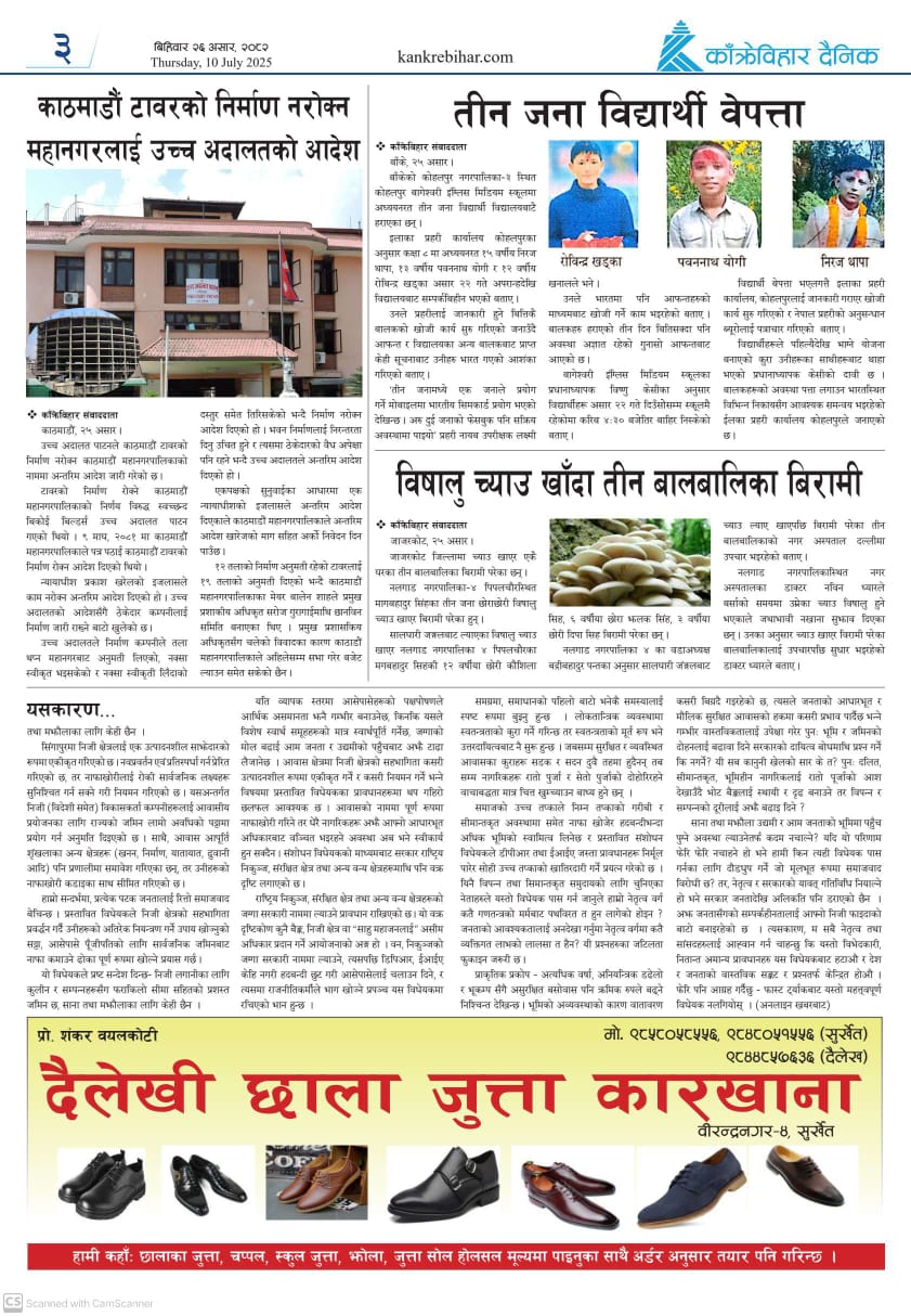 काँक्रेविहार दैनिकः आइतवार २२ असर २०८२, 06 July 2025