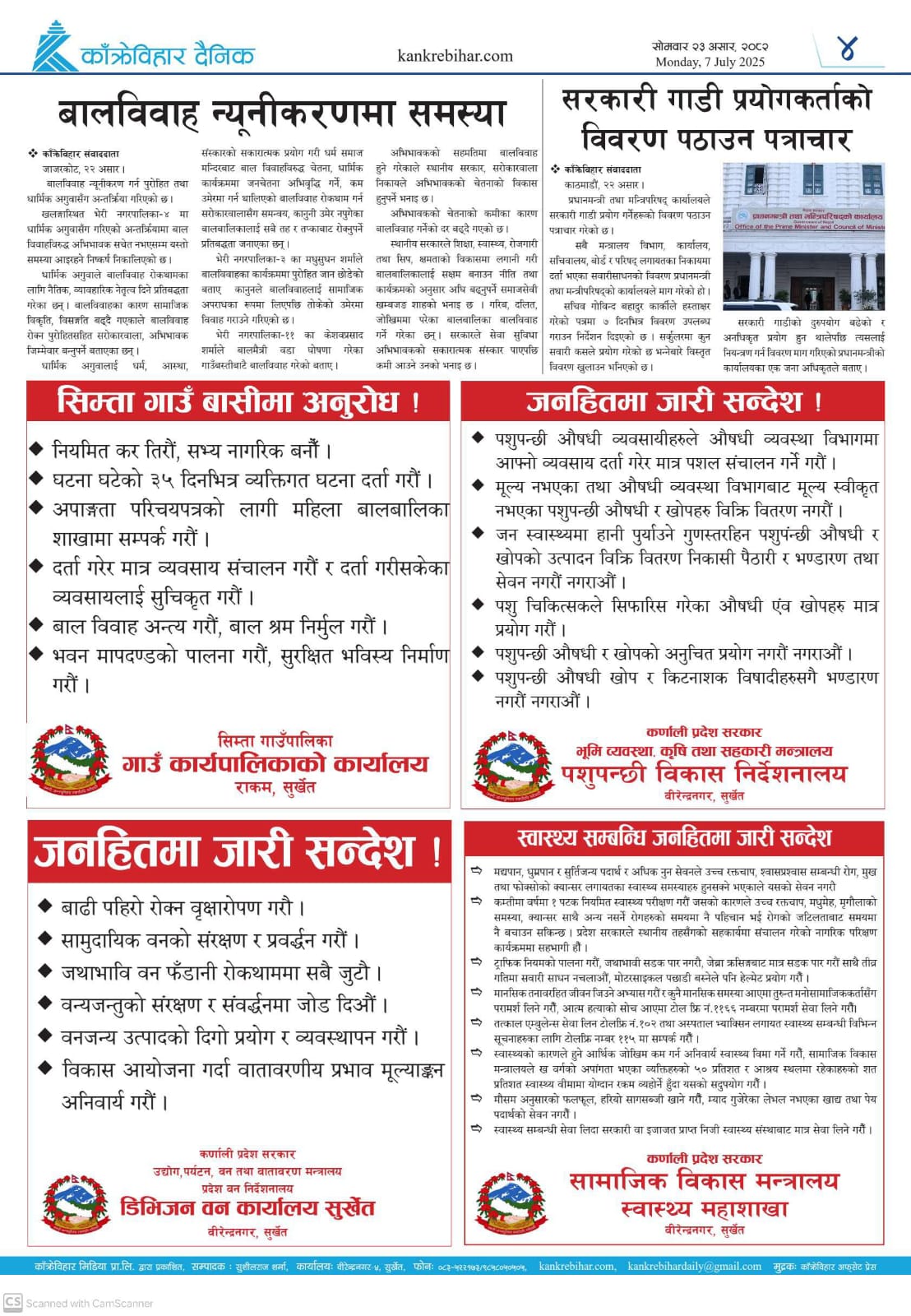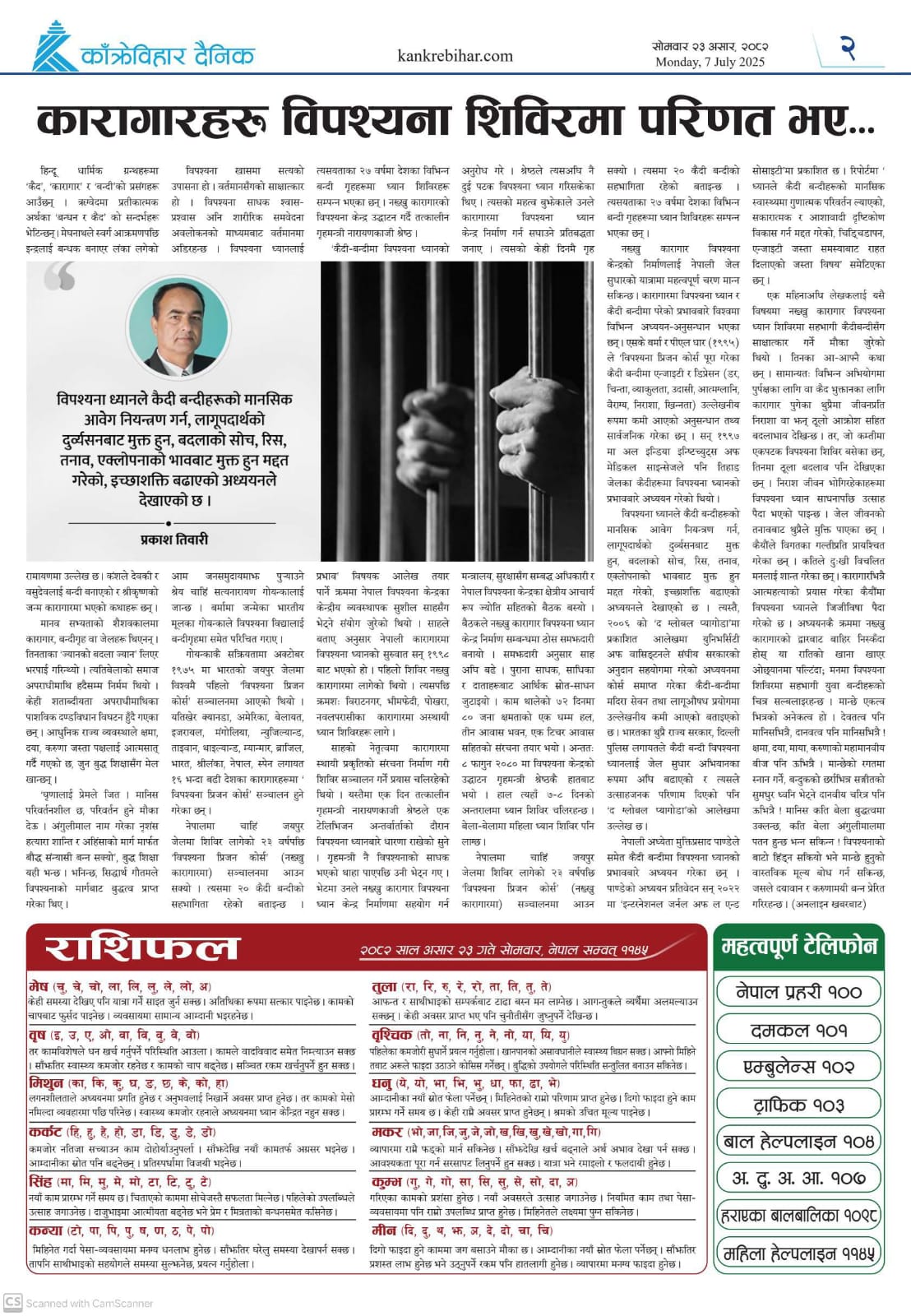 काँक्रेविहार दैनिकः सोमवार २३ असर २०८२, 07 July 2025