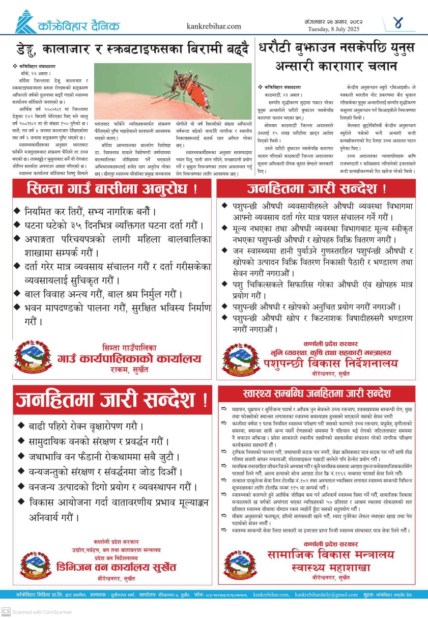 काँक्रेविहार दैनिकः मंगलवार २४ असर २०८२, 08 July 2025