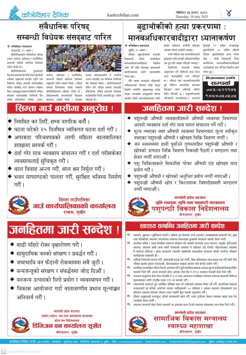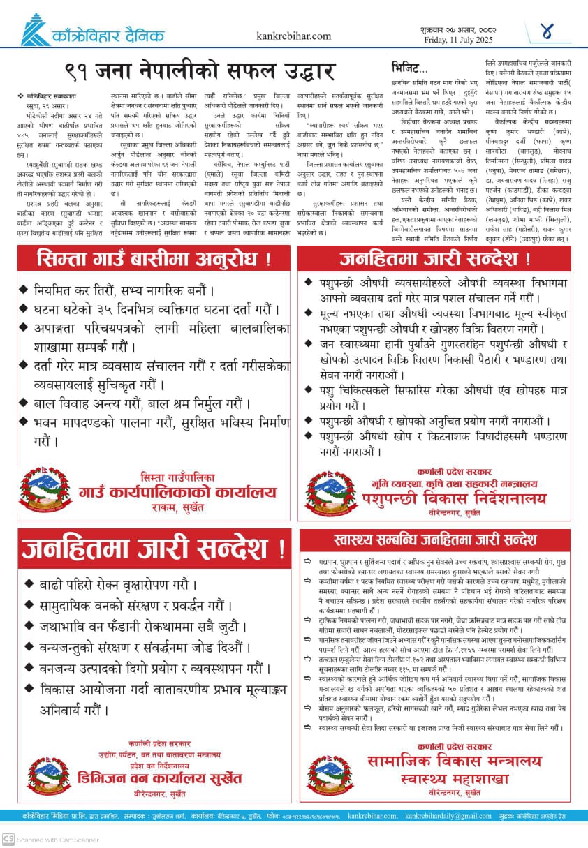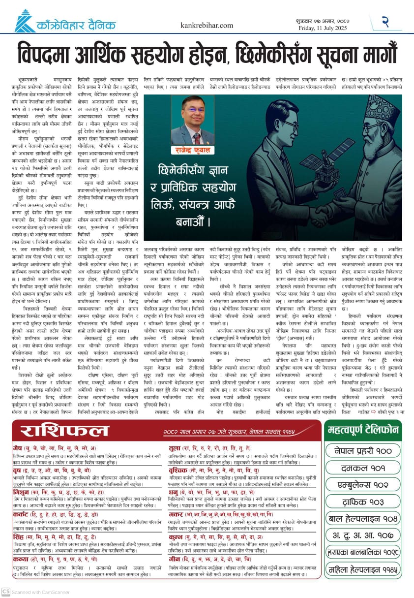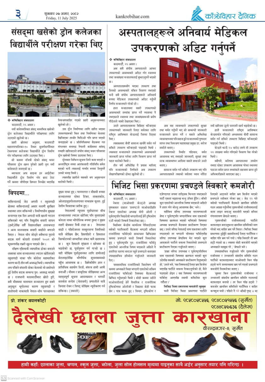 काँक्रेविहार दैनिकः शुक्रवार २७ असर २०८२, 11 July 2025