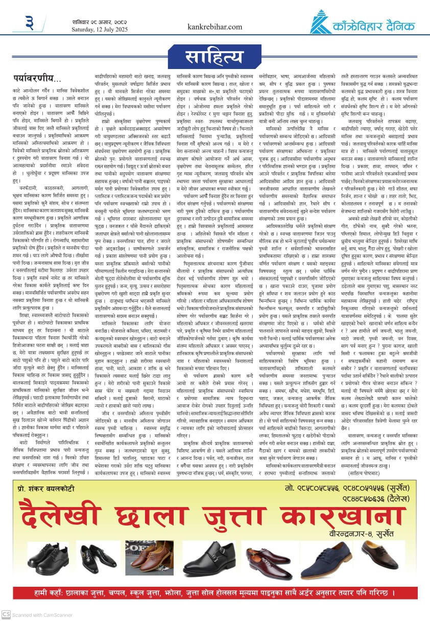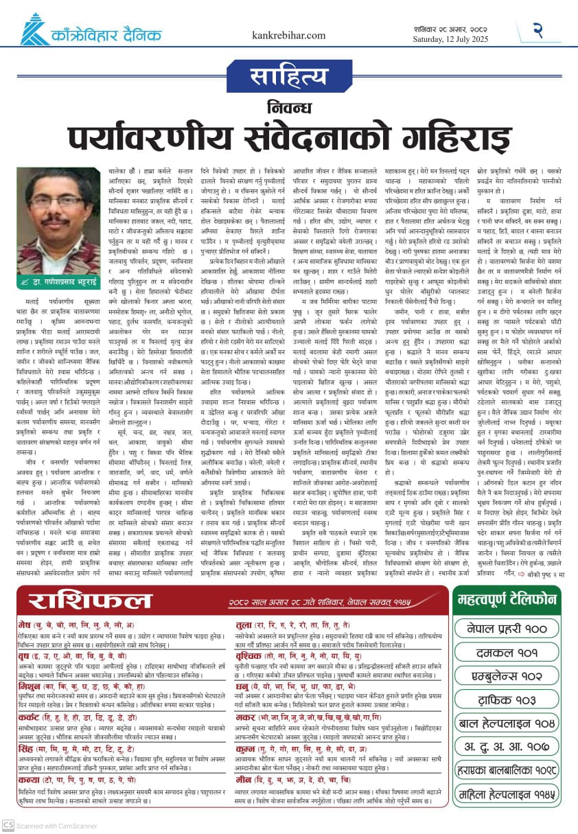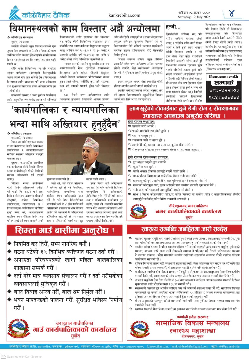 काँक्रेविहार दैनिकः शनिवार २८ असर २०८२, 12 July 2025