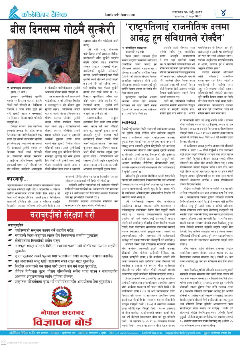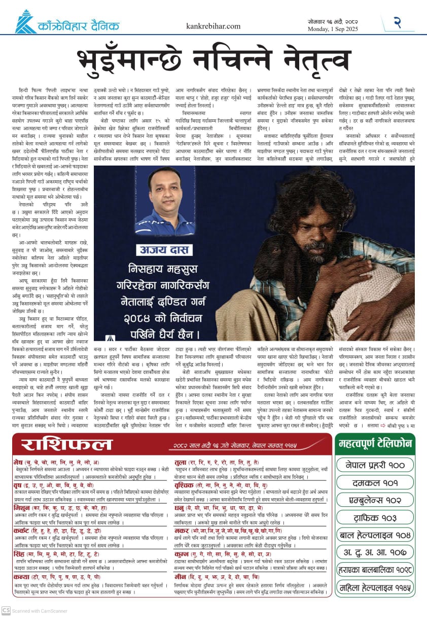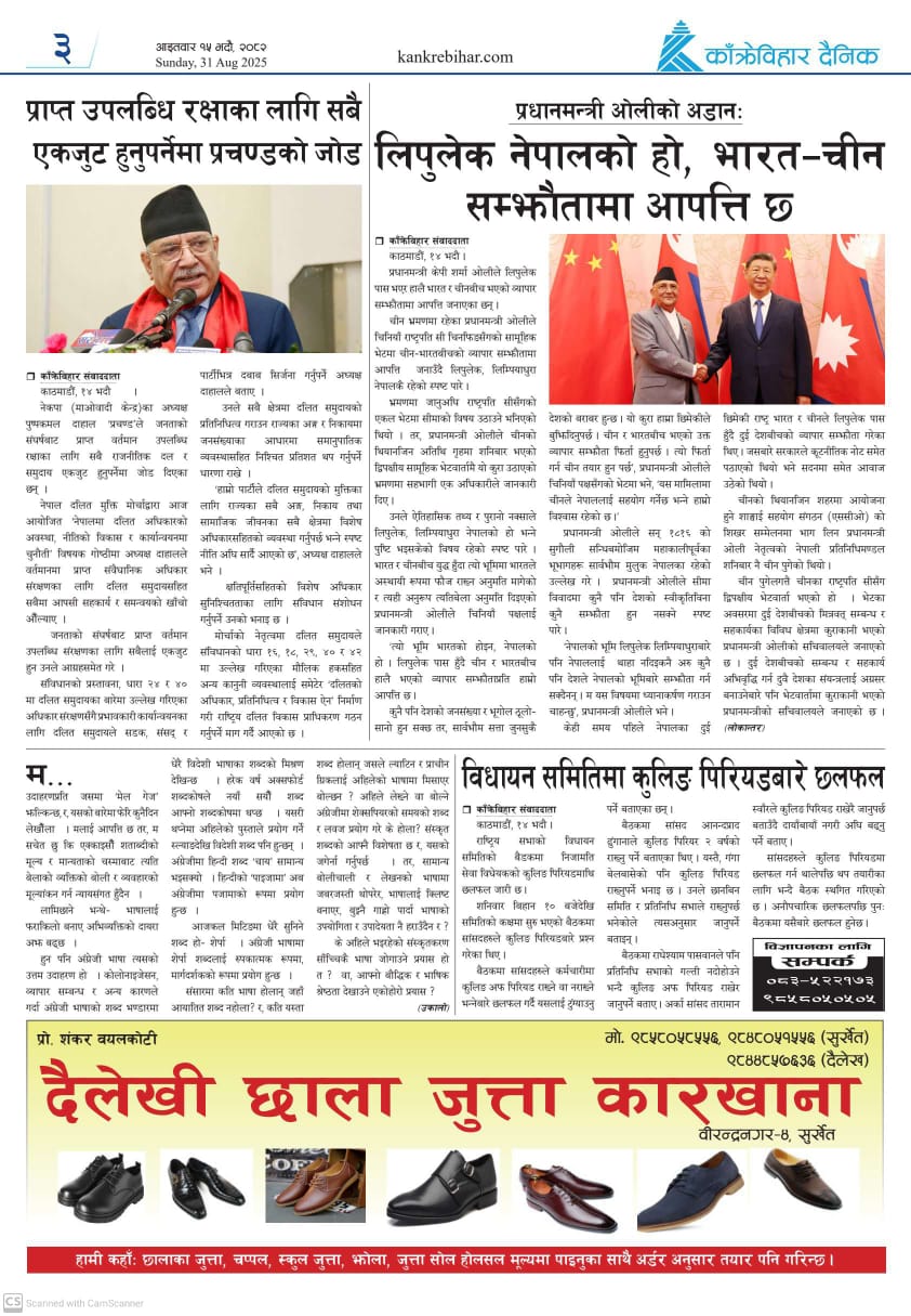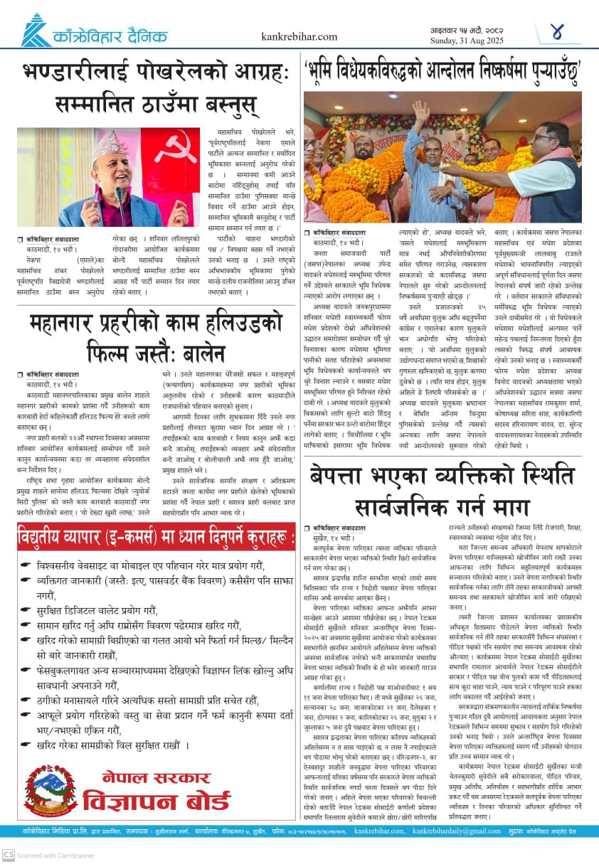 काँक्रेविहार दैनिकः आइतवार १५ भदौ २०८२, 31 Aug 2025