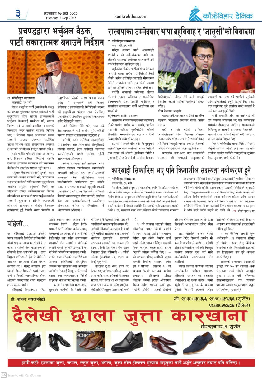 काँक्रेविहार दैनिकः मंगलवार १७ भदौ २०८२, 2 Sep 2025
