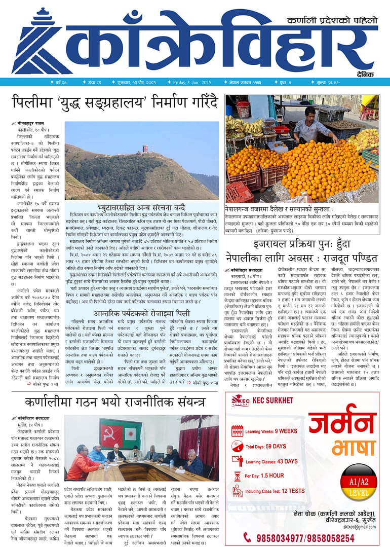 काँक्रेविहार दैनिक : शुक्रवार, १९ पौष २०८१, 3 Jan 2025