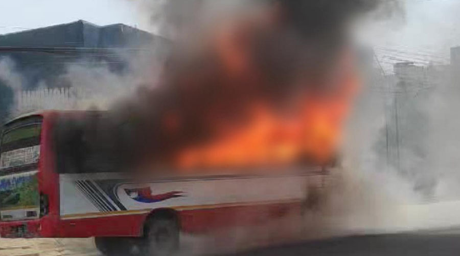 ढुंगेअड्डा पिपलबोटस्थित सडकमा बा. प्र.०३–०१–००५ ख ९७८६ नम्बरको बसमा आगलागी भएको हो । उक्त बस कलंकीबाट थानकोटतर्फ जाँदै थियो ।बसको फाइबरमा तार सर्ट भएर आगलागी भएको जिल्ला प्रहरी परिसर काठमाडौंका एसपी तथा प्रवक्ता अपील राज बोहराले बताए ।