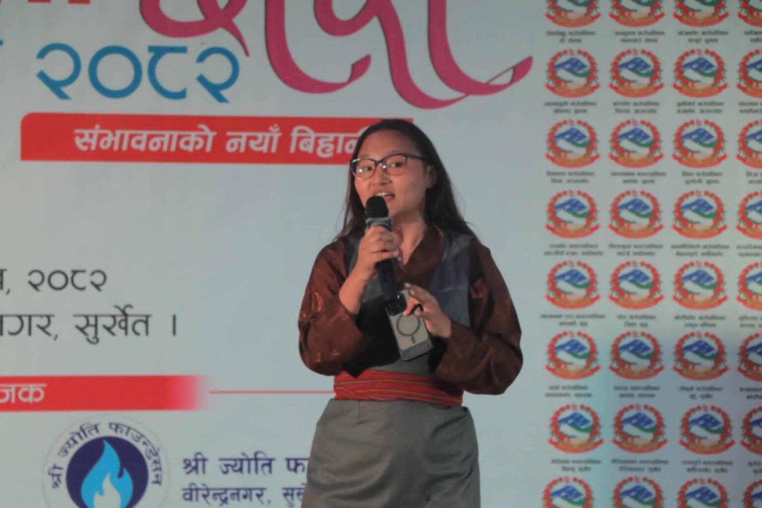 मेरो गाउँको भाषा अर्थात् मातृभाषा ‘लिमी के’ हो । हाम्रो गाउँमा पहिला स्कुल थिएन् । अहिले एउटा मातृभाषा सम्बन्धी स्कुल छ । तर अहिले हाम्रो गाउँमा पढाउने व्यक्तिलाई नेपाल सरकारले तलब दिँदैन । एनजियोले दिन्छ । हाम्रो मातृभाषा पढाउने टिचरलाई । त्यहाँ राज्यको उपस्थिती छैन । नेपाल—अमेरिका फिल्म फेस्टिबलमा बेस्ट डकुमेन्ट्री,नेपाल कल्चरल इन्टरनेशनल फिल्म फेस्टिभलमा बेस्ट नेशनल डकुमेन्ट्री अवार्ड लगायत थुप्रै पुरस्कार पाएकी र अहिले जलबायु परिवर्तनले पारेको असरको अध्ययनमा सक्रिय टासीले कर्णालीको सुर्खेतमा जारी छोरी सम्मेलनमा दिएको मनतब्य ।