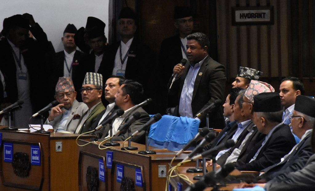 मंगलबार प्रतिनिधि सभाको बैठकमा विशेष समयमा बोल्दै उनले गत चैत १५ गते तीनकुनेमा भएको प्रदर्शनका क्रममा सरकारी सम्पतिमाति क्षति पुर्याउने काम भएको स्मरण गरे ।