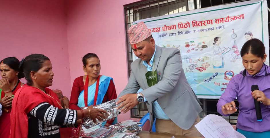 मातृ तथा शिशु स्वास्थ्यमा सुधार ल्याउने उद्देश्यसहित सिद्धकुमाख गाउँपालिकाले ‘अध्यक्ष पोषण कार्यक्रम’ अन्तर्गत ६५९ जना हजार दिने आमाहरूलाई पोषिलो पिठो वितरण गरेको छ ।