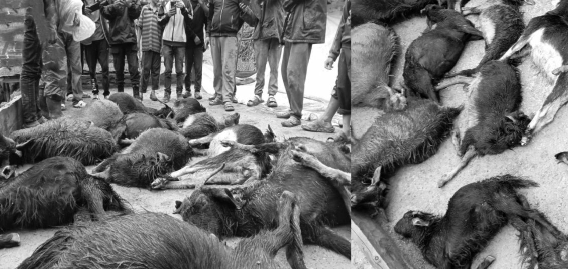 मुगुमा अविरल वर्षा संगै चट्याङ लागेर एकै किसानका १४ बाख्रा मरेका छन् ।