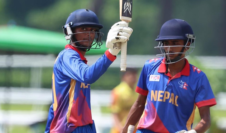 नेपालका लागि रौनक श्रीवास्तावले शतक प्रहार गरे। उनले अन्तिम ओभरमा आउट हुनुअघि १३२ बलमा १६ चौका र ५ छक्काको मद्दतमा १६८ रन बनाए।