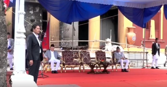 भदौ २४ गतेको जेनजी प्रदर्शनका क्रममा जलेको शीतल निवासको प्राङ्गणमा सोमबार मन्त्रीहरूको शपथ हुन लागेको छ । शीतल निवासको प्राङ्गणमा टेन्ट टाँगेर शपथग्रहणका लागि मञ्च बनाइएको छ । मञ्चको पृष्ठभूमिमा आगजनीबाट जलेको केही भाग समेत देखिएको छ । यस्तै मञ्चमा सामान्य कार्पेट बिछ्याइएको छ ।