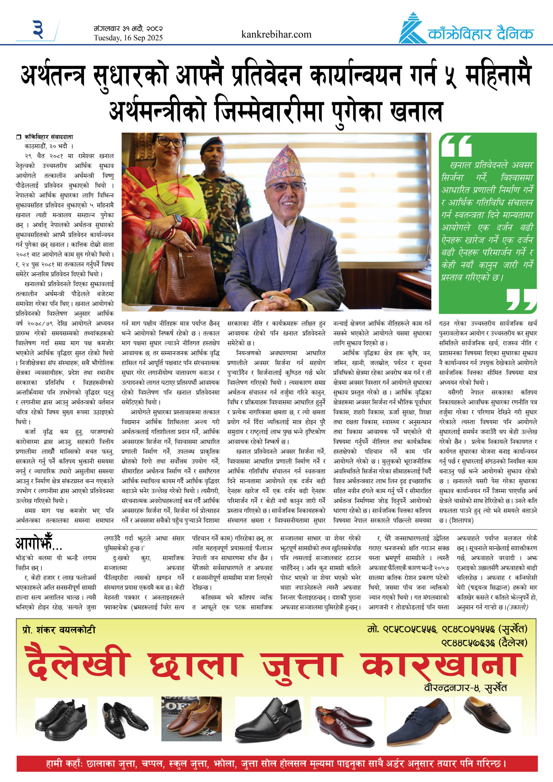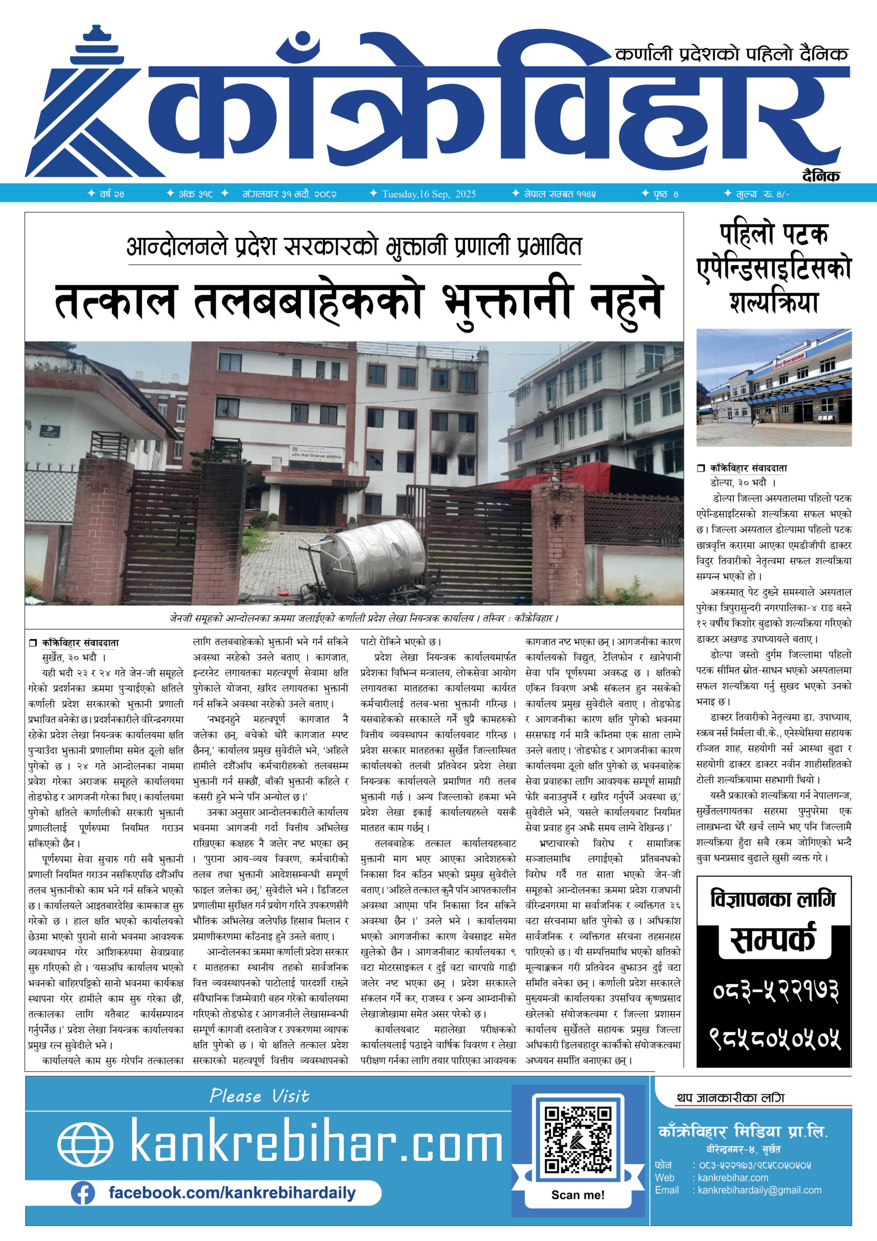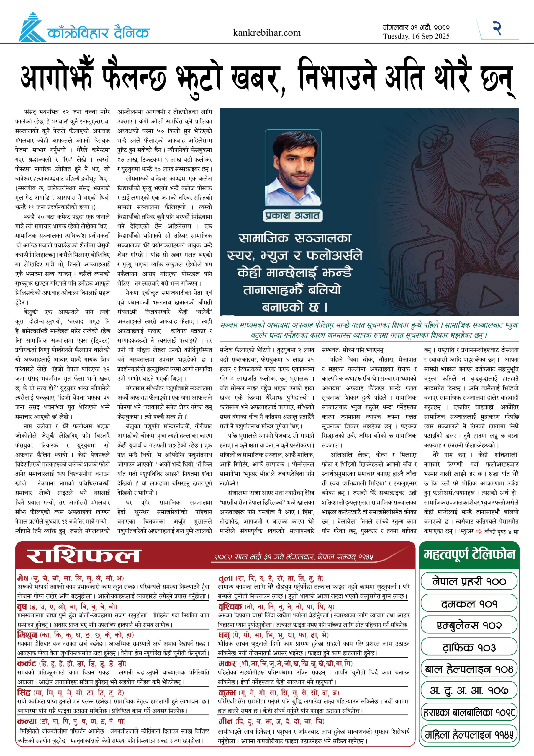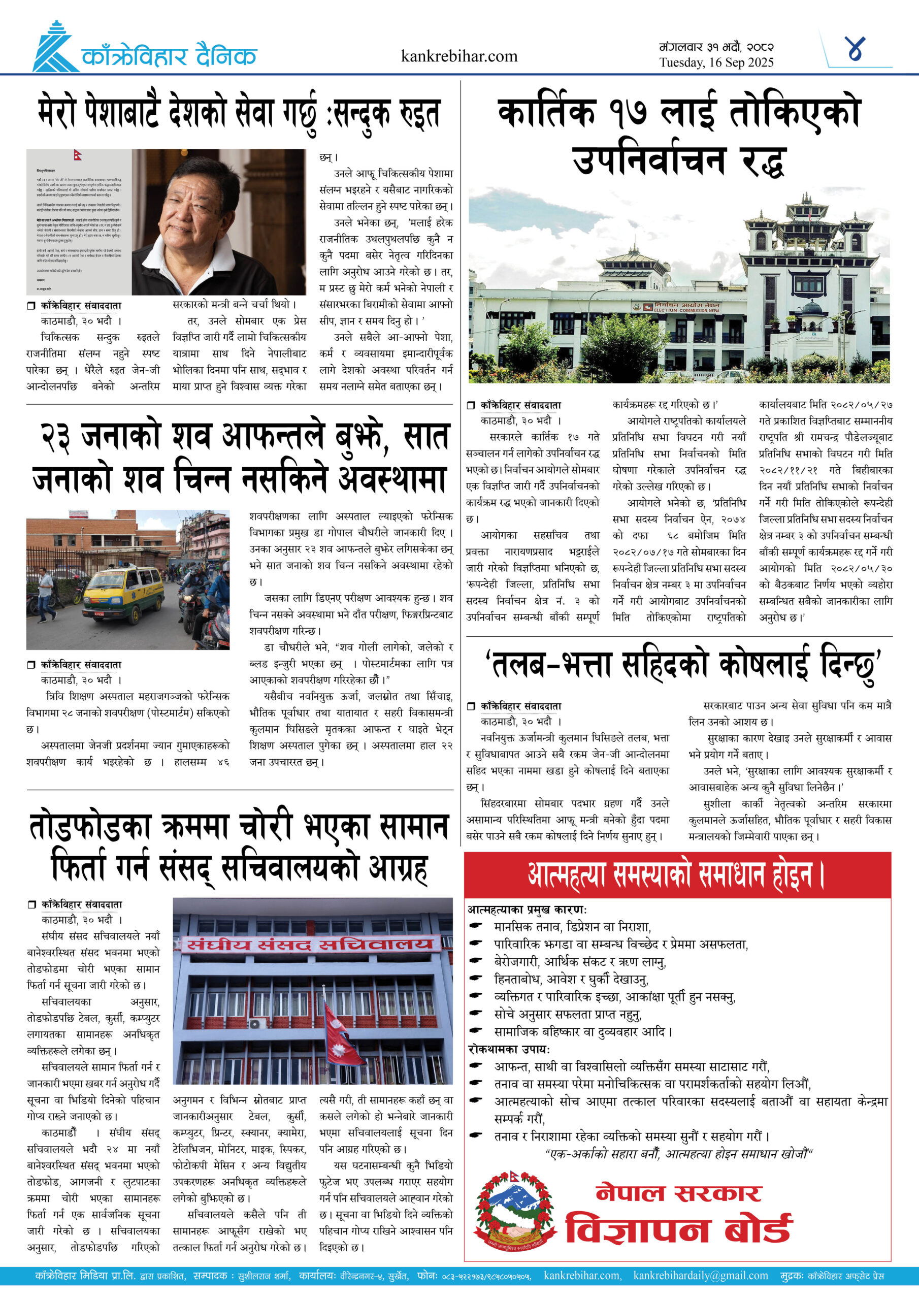 काँक्रेविहार दैनिकःमंगलवार ३१ भदौ २०८२, 16 Sep 2025