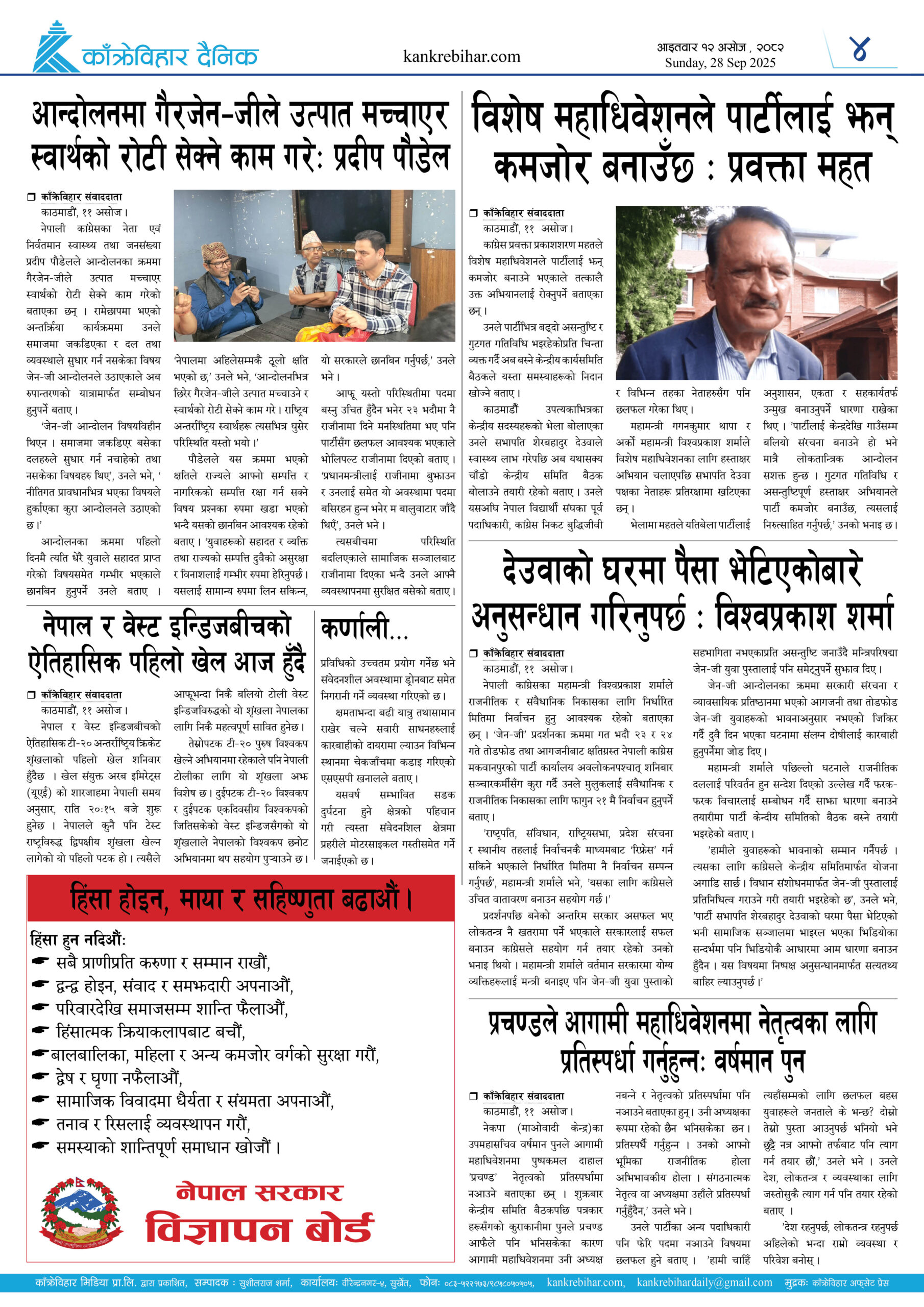 काँक्रेविहार दैनिकः आइतवार १२ असोज २०८२, 28 Sep 2025