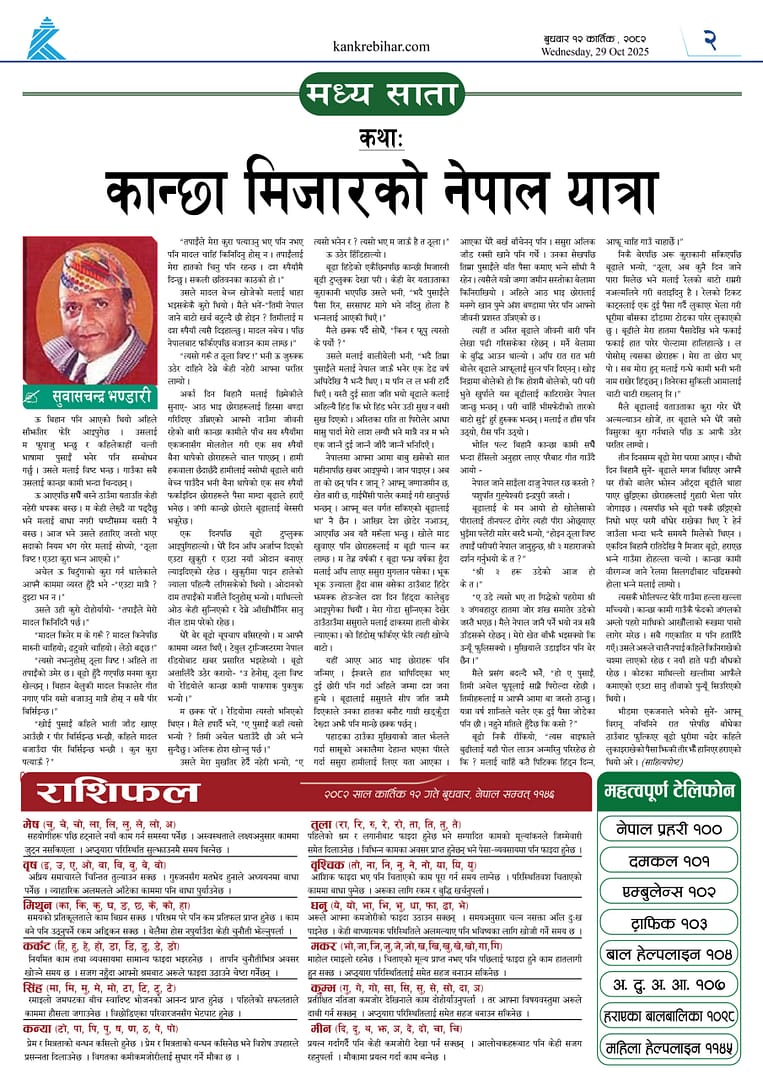 काँक्रेविहार दैनिकः साेमवार ३ कार्तिक २०८२, 20 Oct 2025