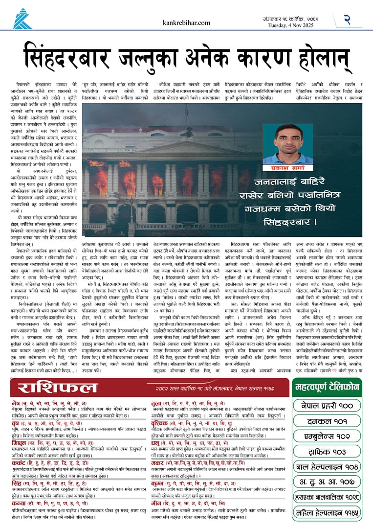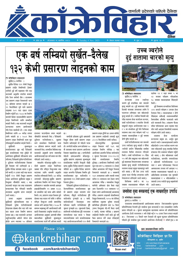 काँक्रेविहार दैनिकःमंगलबार २ मंसिर २०८२, 18 Nov 2025