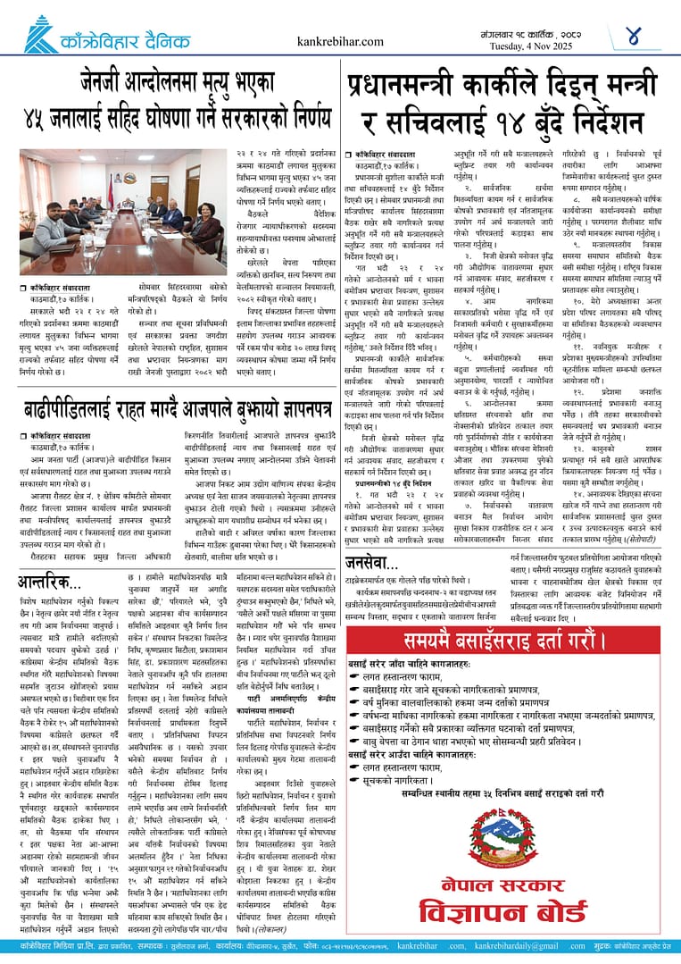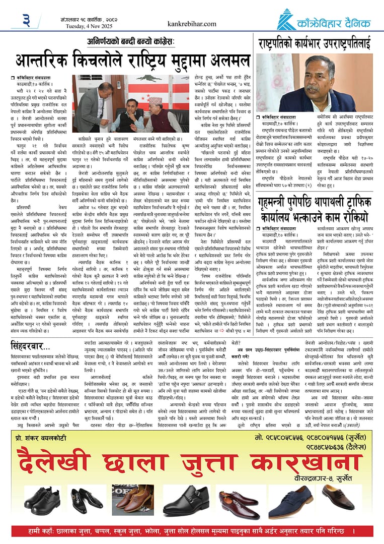 काँक्रेविहार दैनिकःबुधबार ३ मंसिर २०८२, 19 Nov 2025