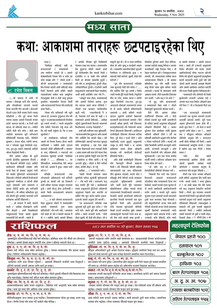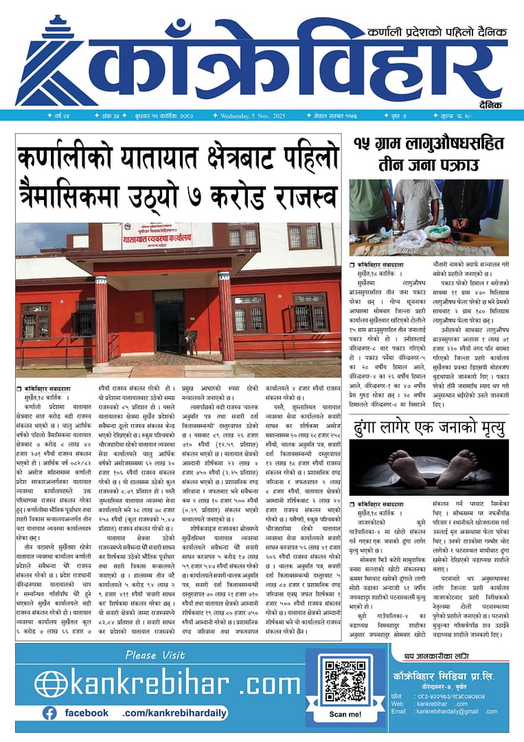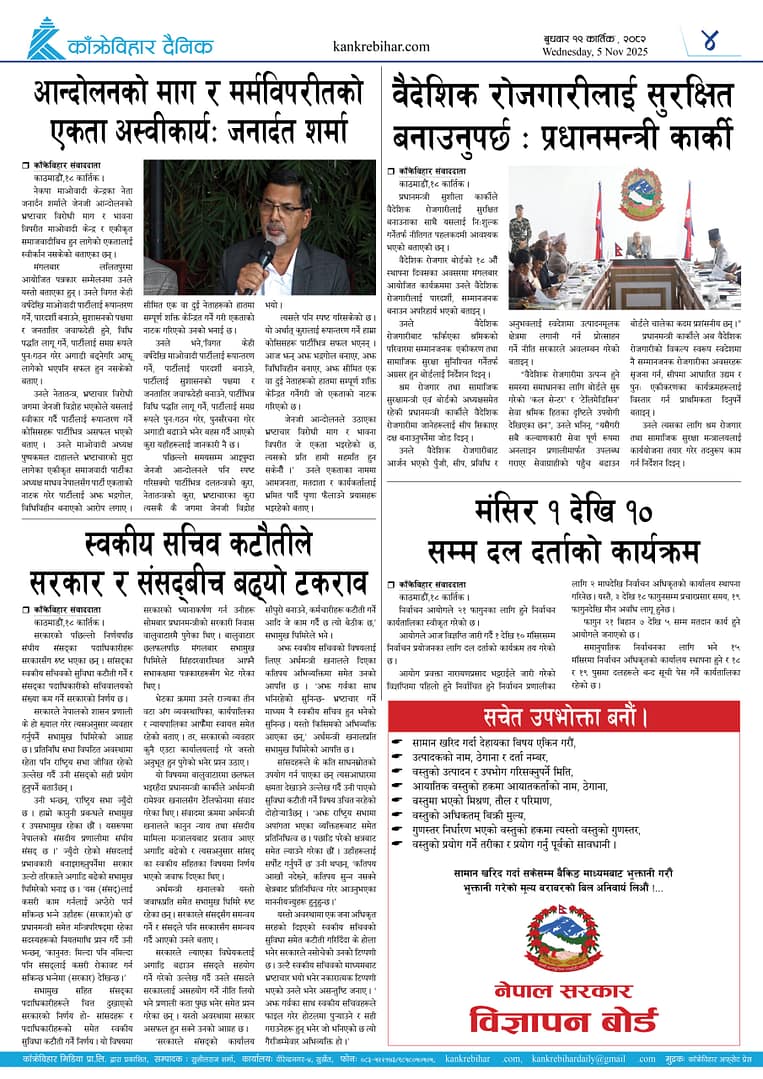 काँक्रेविहार दैनिकःबुधवार १९ कार्तिक २०८२, 5 Nov 2025