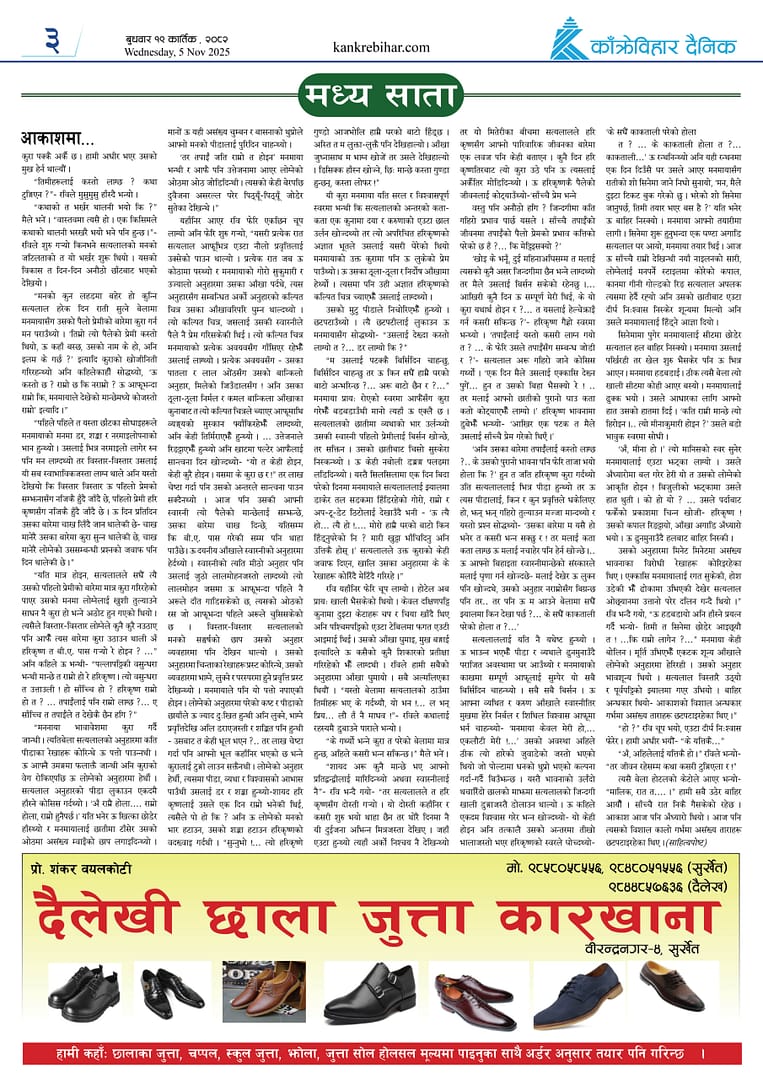 काँक्रेविहार दैनिकःबुधबार ३ मंसिर २०८२, 19 Nov 2025