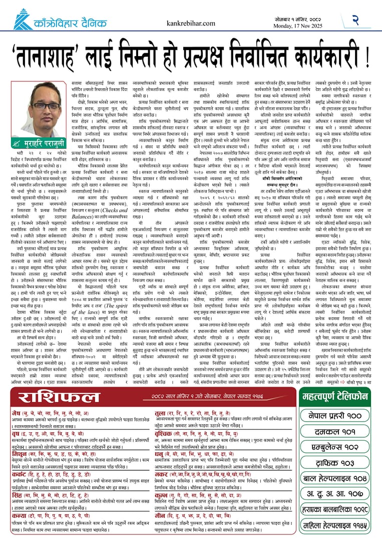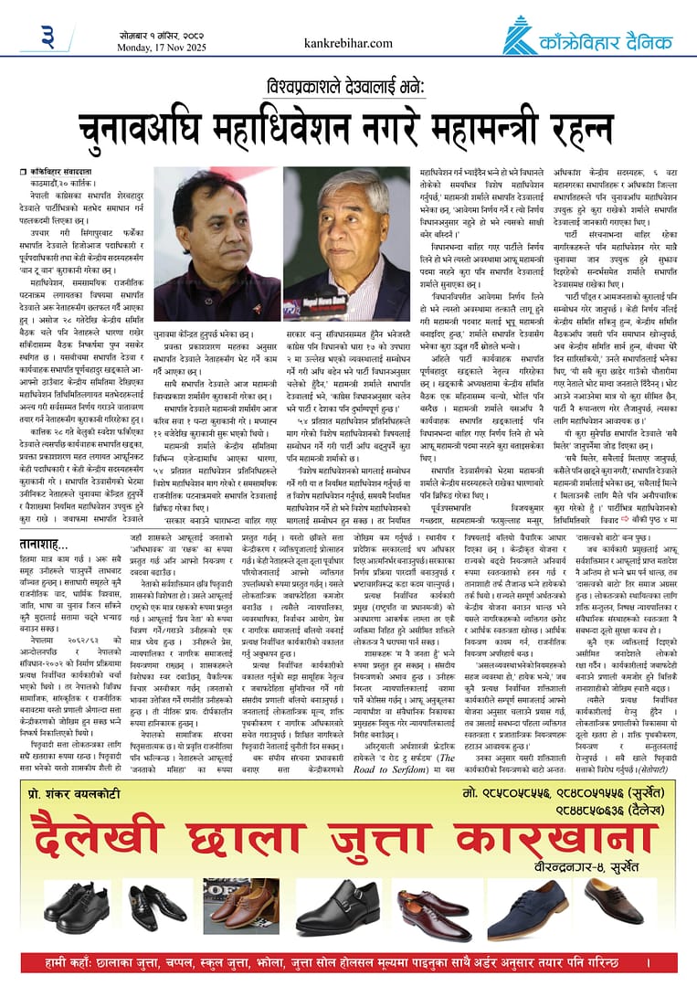 काँक्रेविहार दैनिकःसोमबार १ मंसिर २०८२, 17 Nov 2025