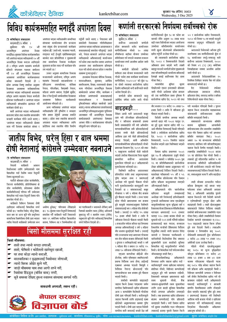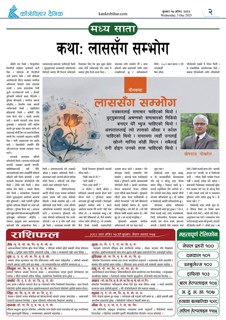 काँक्रेविहार दैनिकःबुधबार १७ मंसिर २०८२, 3 Dec 2025