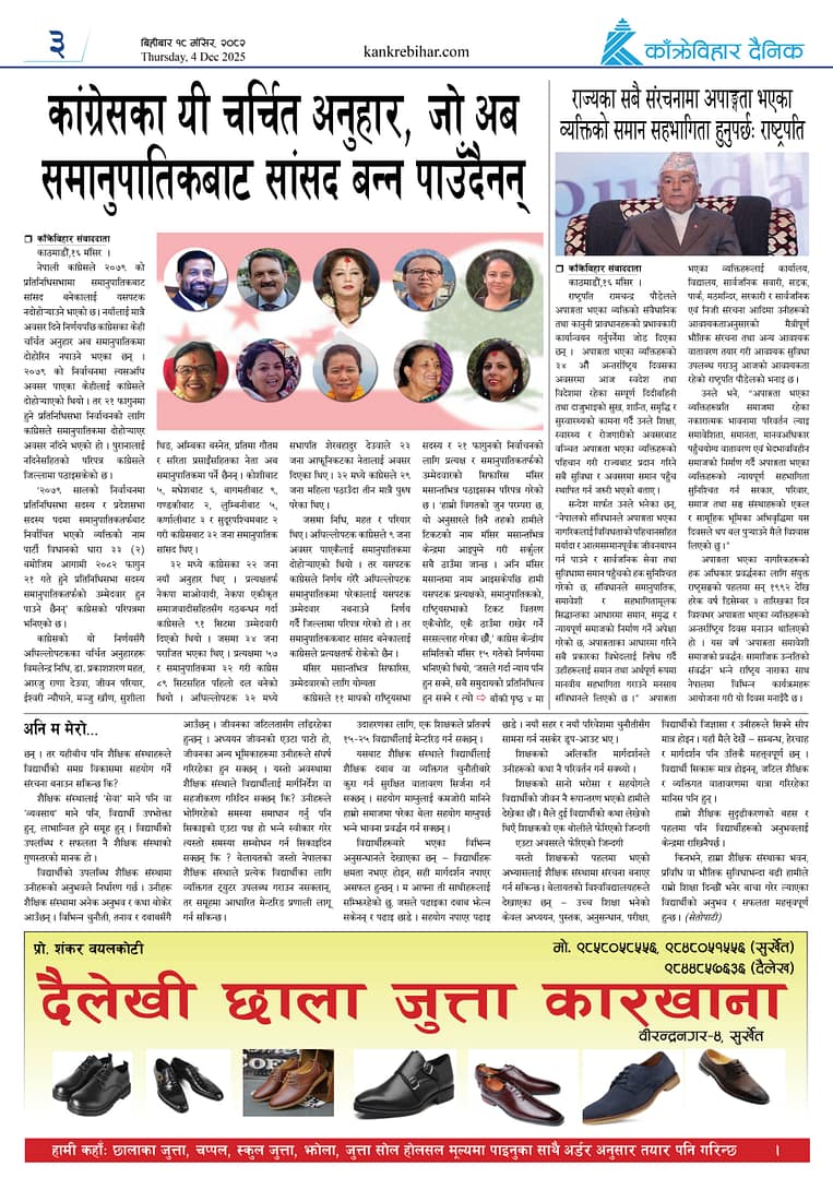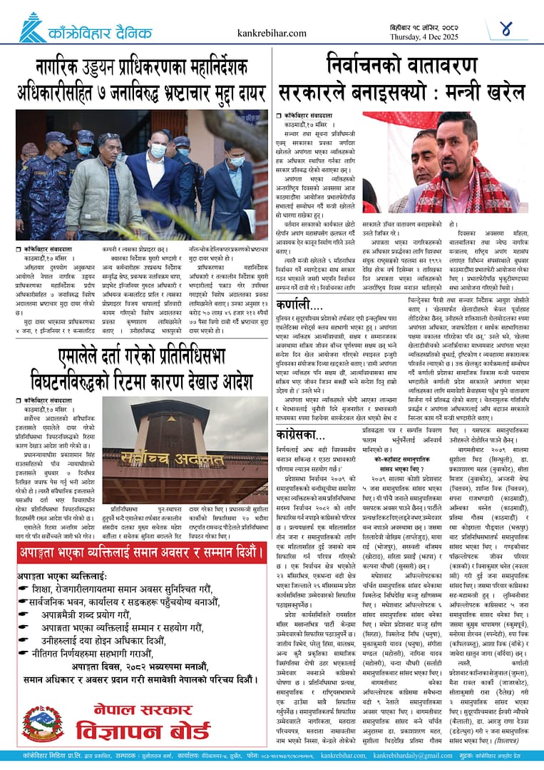 काँक्रेविहार दैनिकःबिहीबार १८मंसिर २०८२, 4 Dec 2025