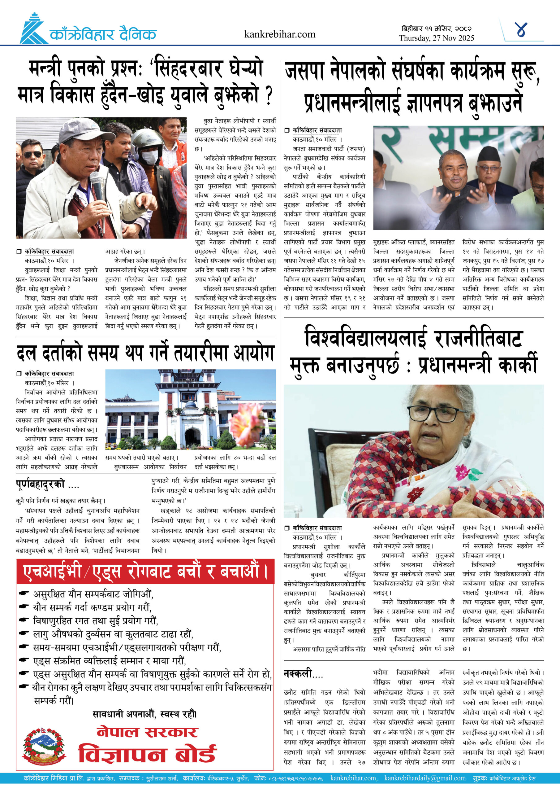 ८ माघमा मनोनयन पत्र र उजुरी उपर जाँचबुझ एवम् निर्णय गर्नेछ । पुनः उम्मेदवारको नामावली प्रकाशन गरिनेछ। ९ माघमा उम्मेदवारको नाम फिर्ता लिन सक्नेछन् । सोही उम्मेदवारको अन्तिम नामावली प्रकाशन हुनेछ र उम्मेदवारलाई निर्वाचन चिह्न प्रदान गरिने छ।