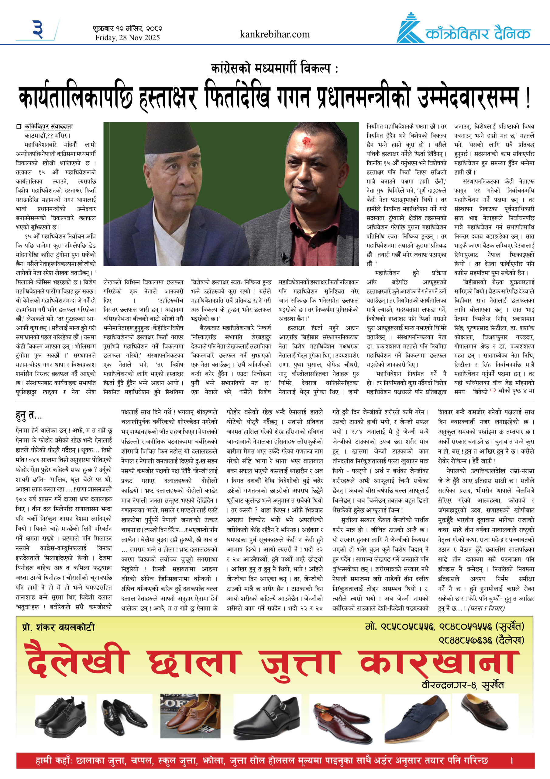 सोही दिन बेलुका उम्मेदवारको सूची प्रकाशन हुनेछ। मनोनयन पत्र दर्ता भएका उम्मेदवारको विरोधमा उजुरी दिने दिने दिन ७ माघमा हुनेछ ।